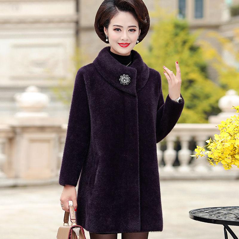 Осенне-зимняя женская шуба из искусственной норки среднего возраста, утолщенная свободная одежда для мам средней длины, элегантная шерстяная куртка 4XL