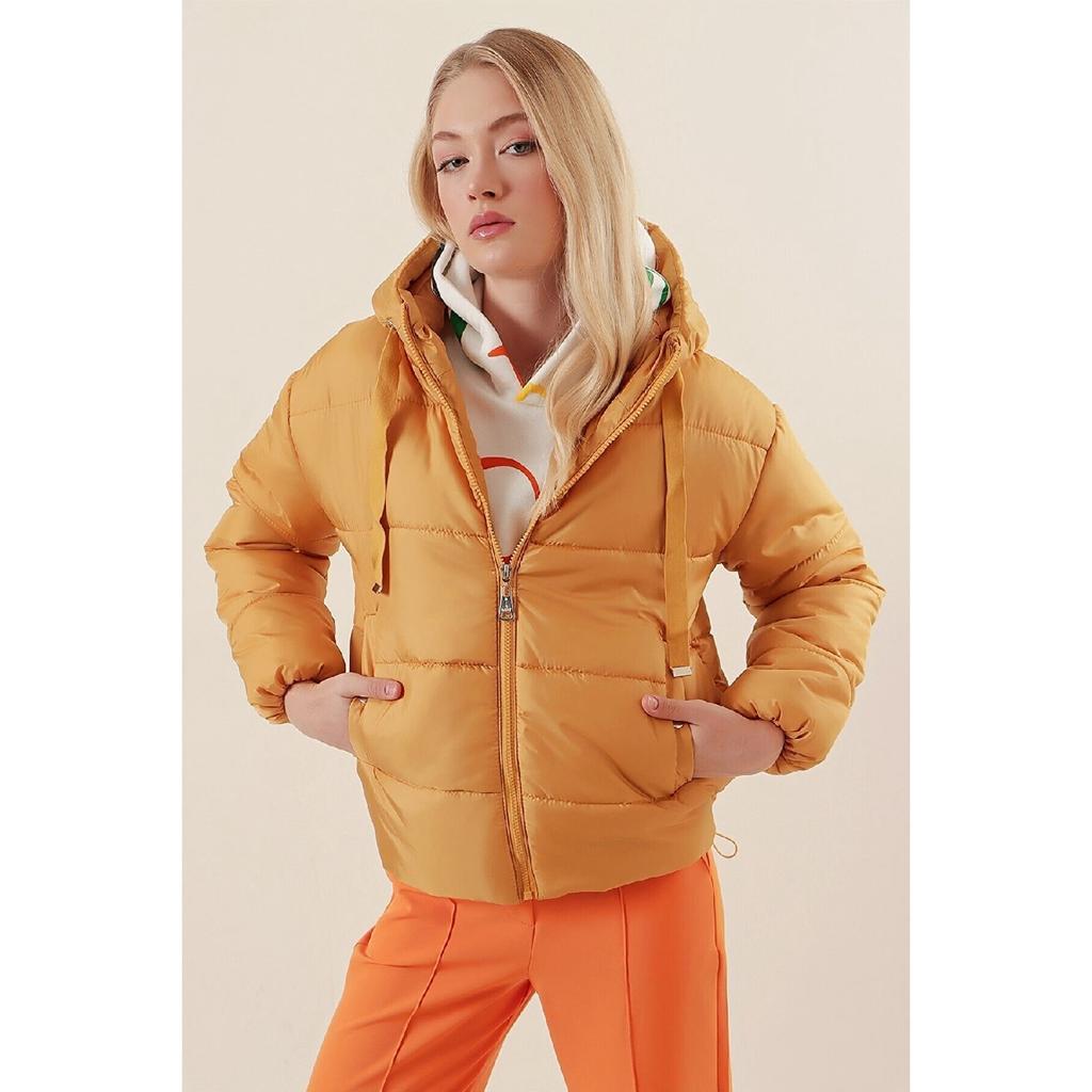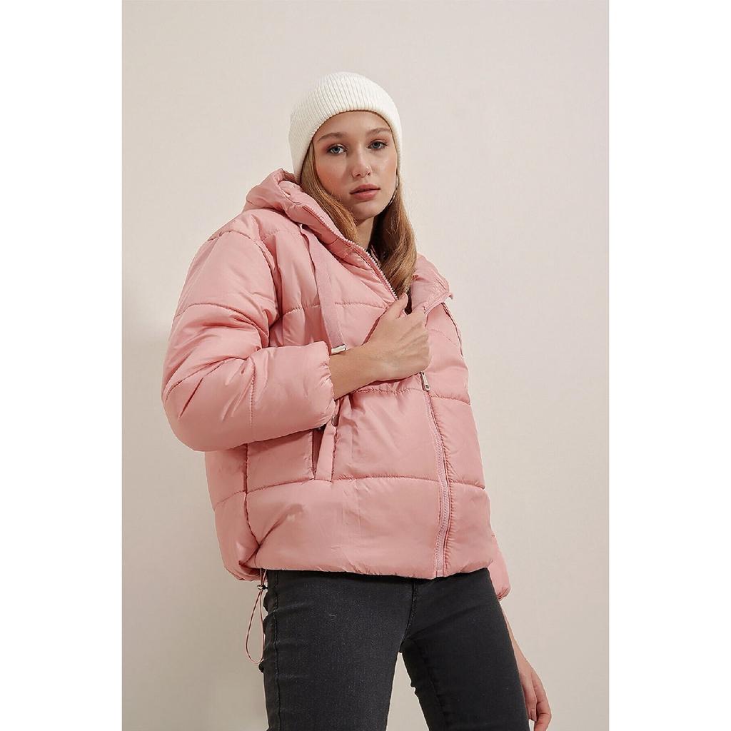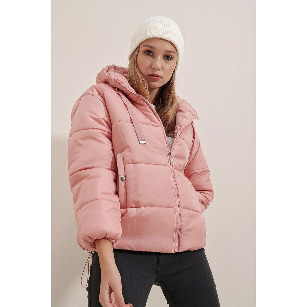 Женское черное пуховое пальто с капюшоном и завязками на талии HL22w-bd151171