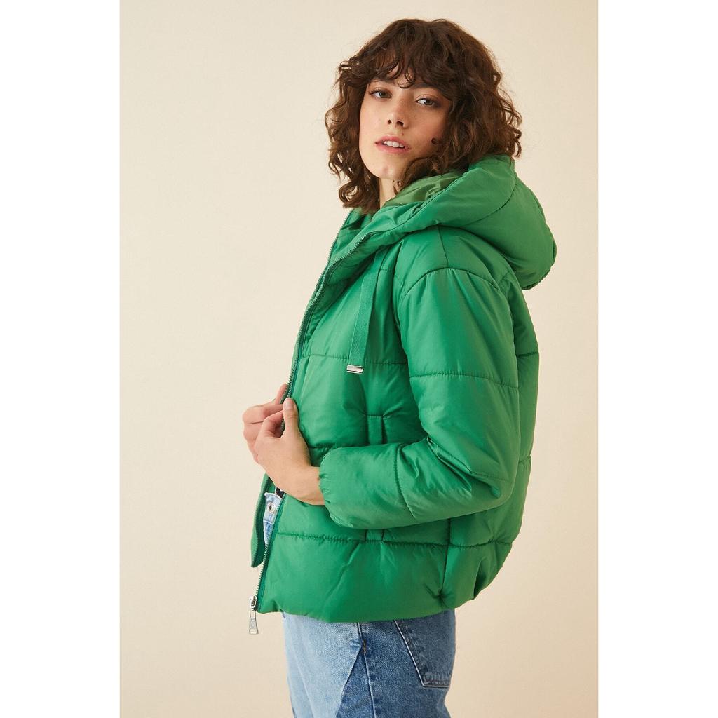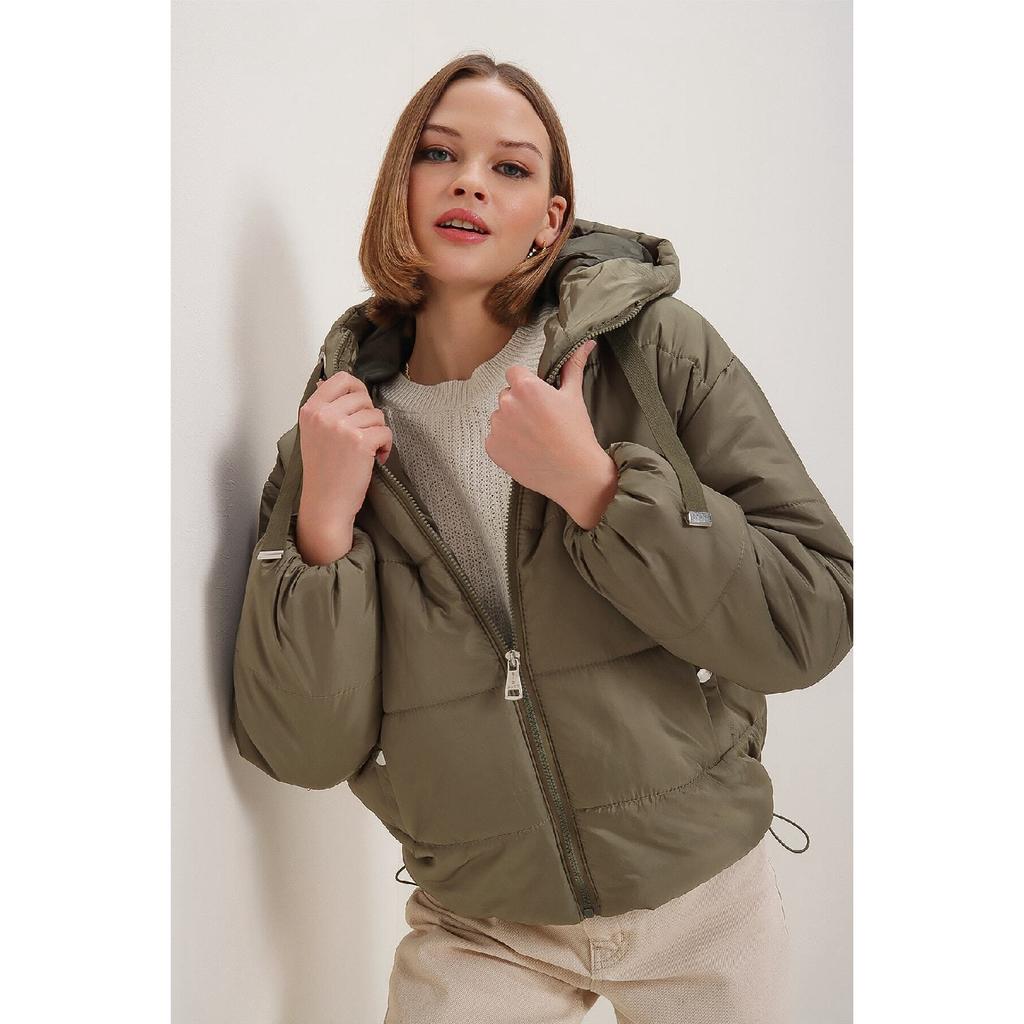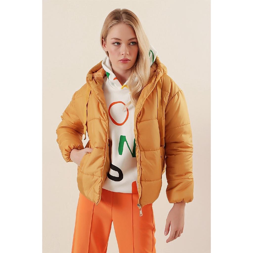 Женское черное пуховое пальто с капюшоном и завязками на талии HL22w-bd151171