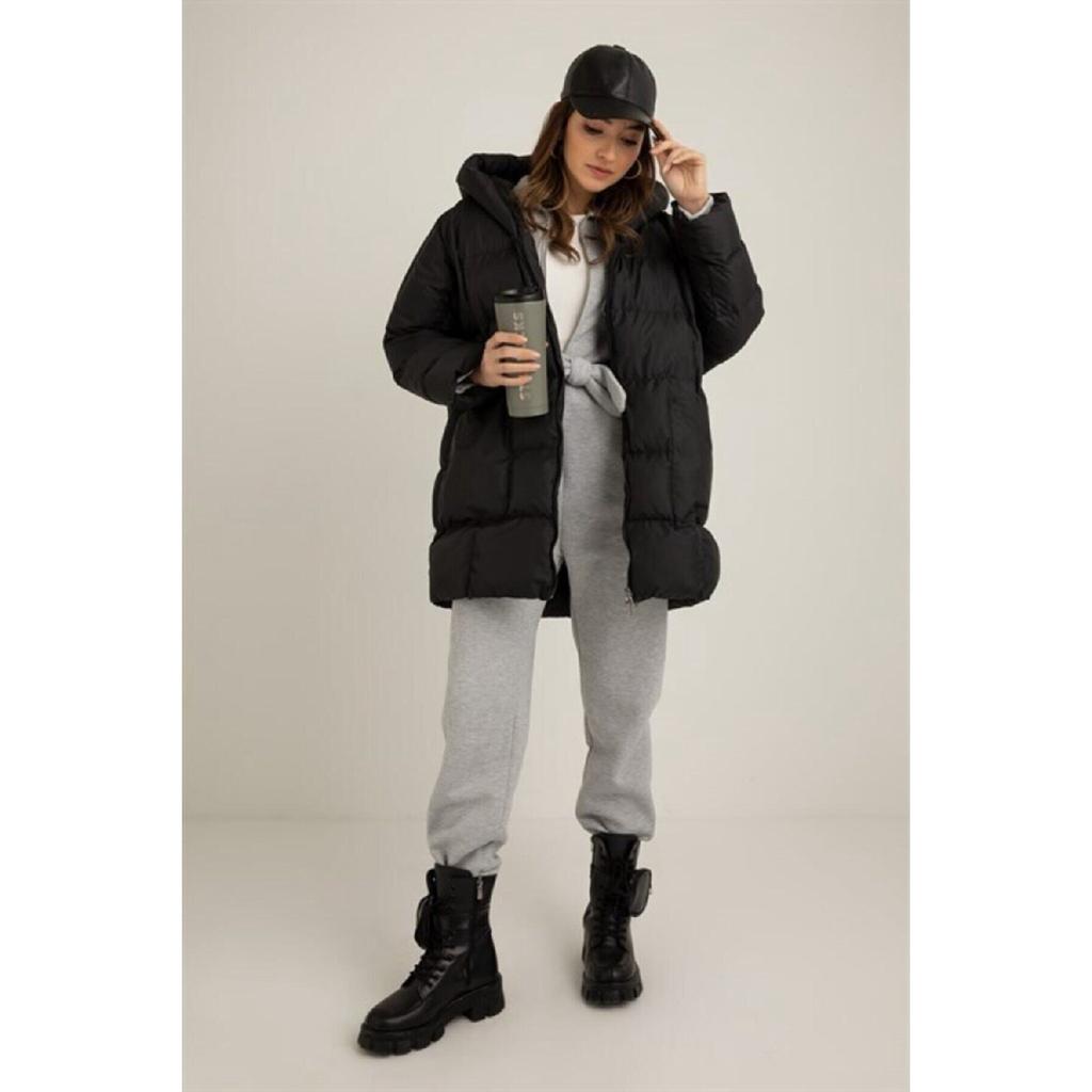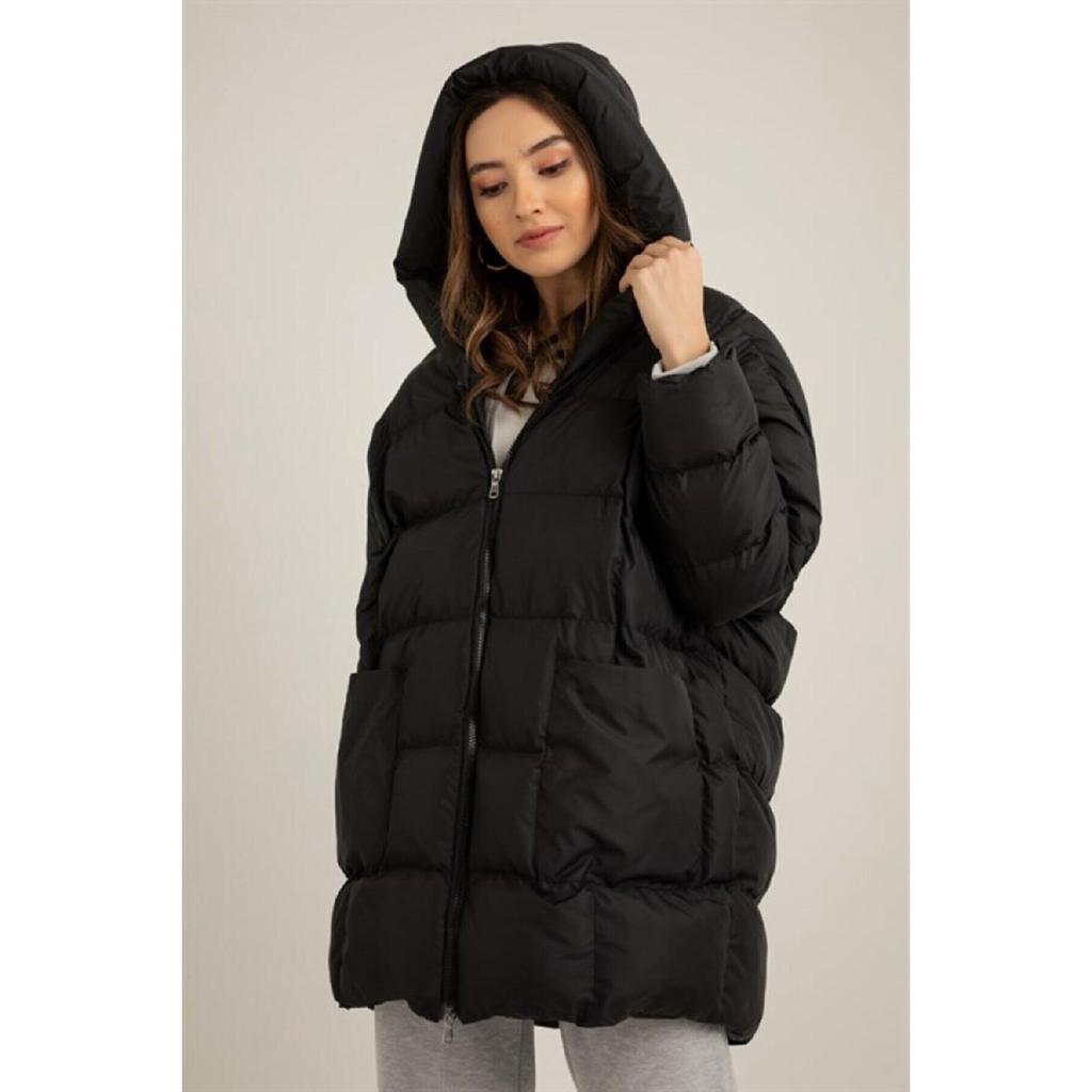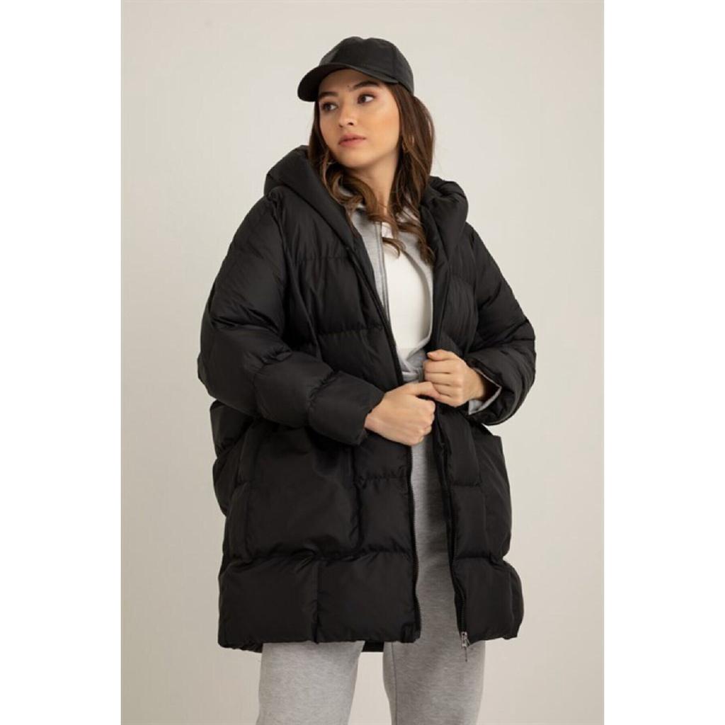 Женское пальто-пуховик оверсайз с капюшоном, черное