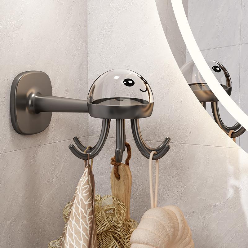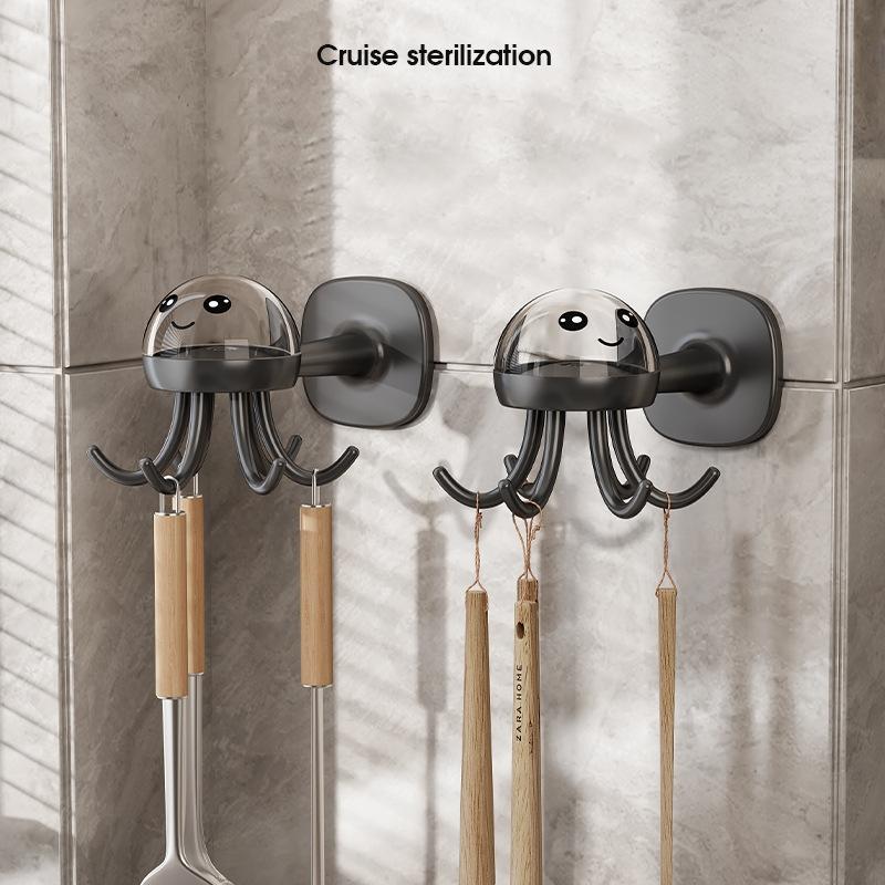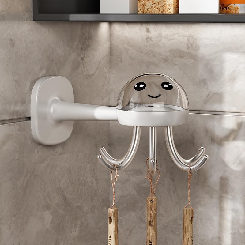 Кухонный вращающийся крючок Настенная полка для хранения со стойкой для хранения, крючок-осьминог с шестью когтями, без перфорации, многофункциональный