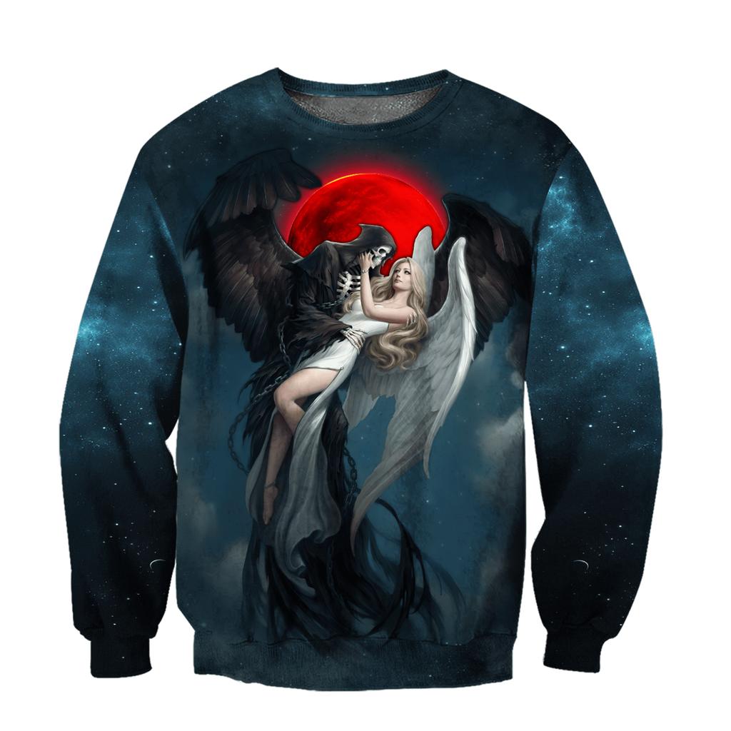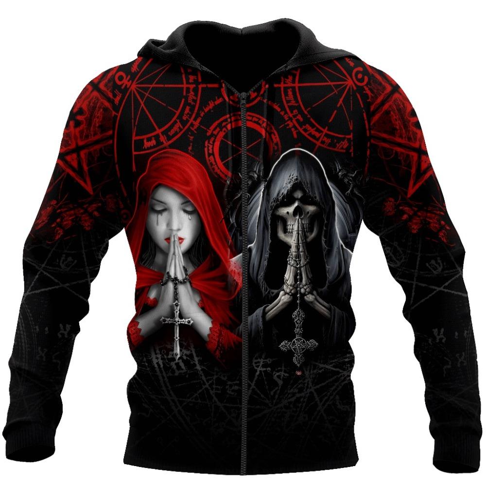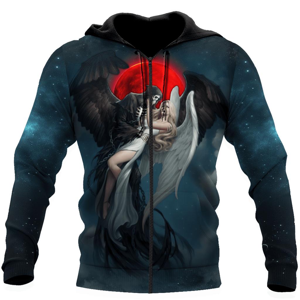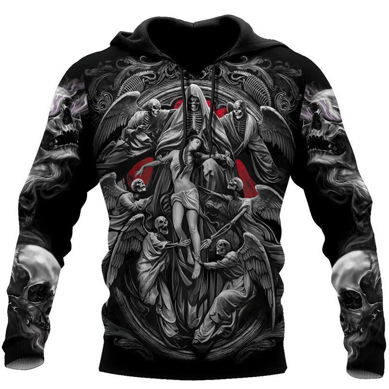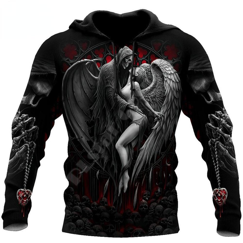 Толстовка мужская женская Скелет Ангел Демон 3D печать мужские толстовки на молнии повседневная уличная одежда осень оверсайз с капюшоном в стиле Харадзюку