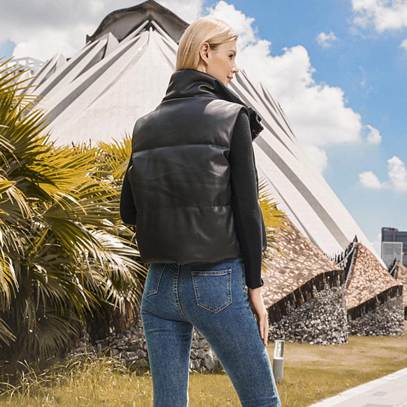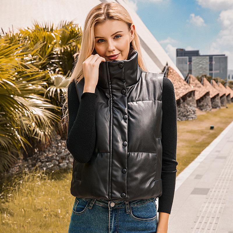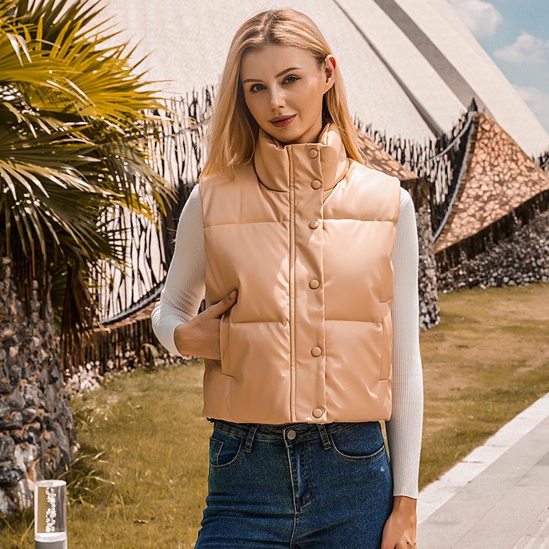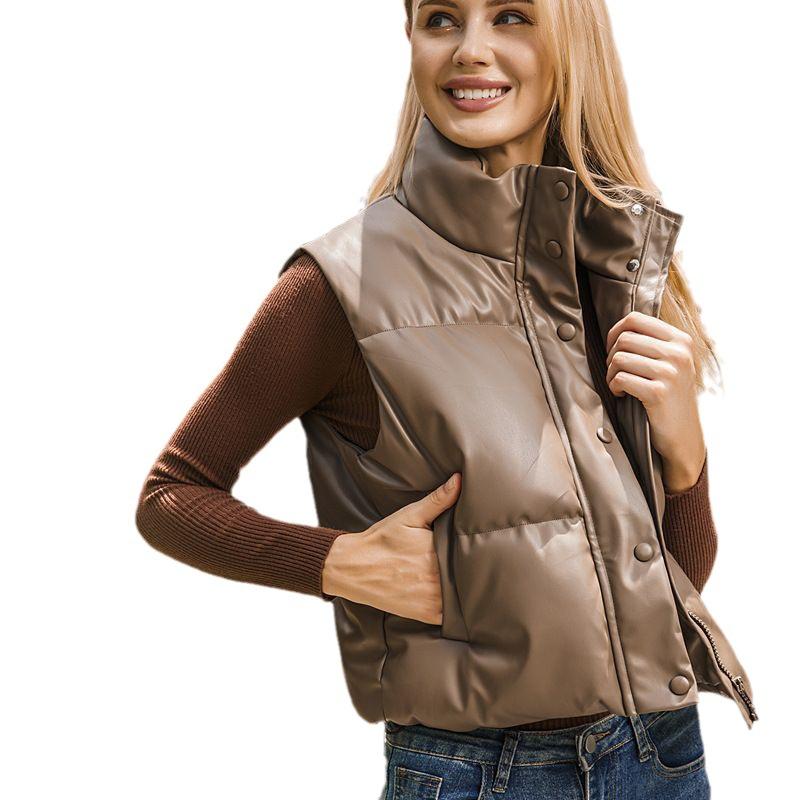Зимний женский короткий хлопковый жилет со стоячим воротником, теплое кожаное пальто