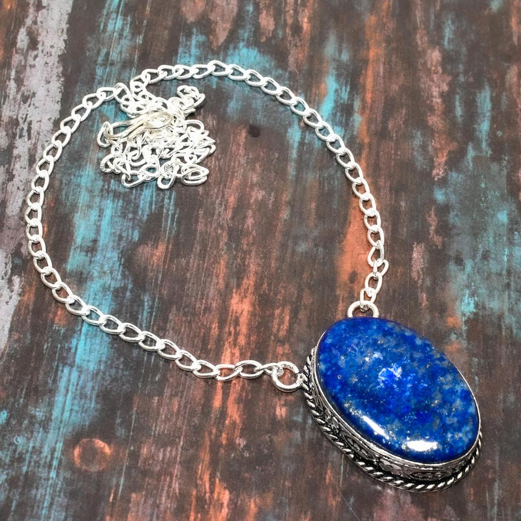 Необычное ожерелье из твердого серебра 925 пробы с драгоценным камнем лазурит ручной работы