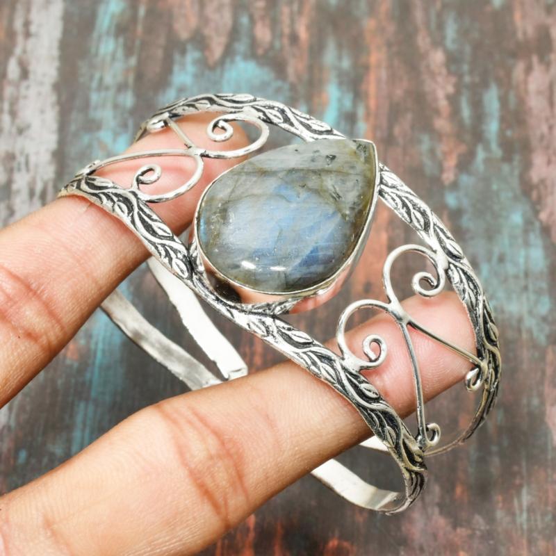 Лабрадорит Драгоценный камень Стерлинговое серебро 925 пробы Замечательный браслет ручной работы Регулируемые ювелирные изделия