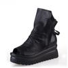 Летние черные ботильоны из натуральной кожи для женщин, босоножки на платформе и высоком каблуке на танкетке, летняя женская обувь