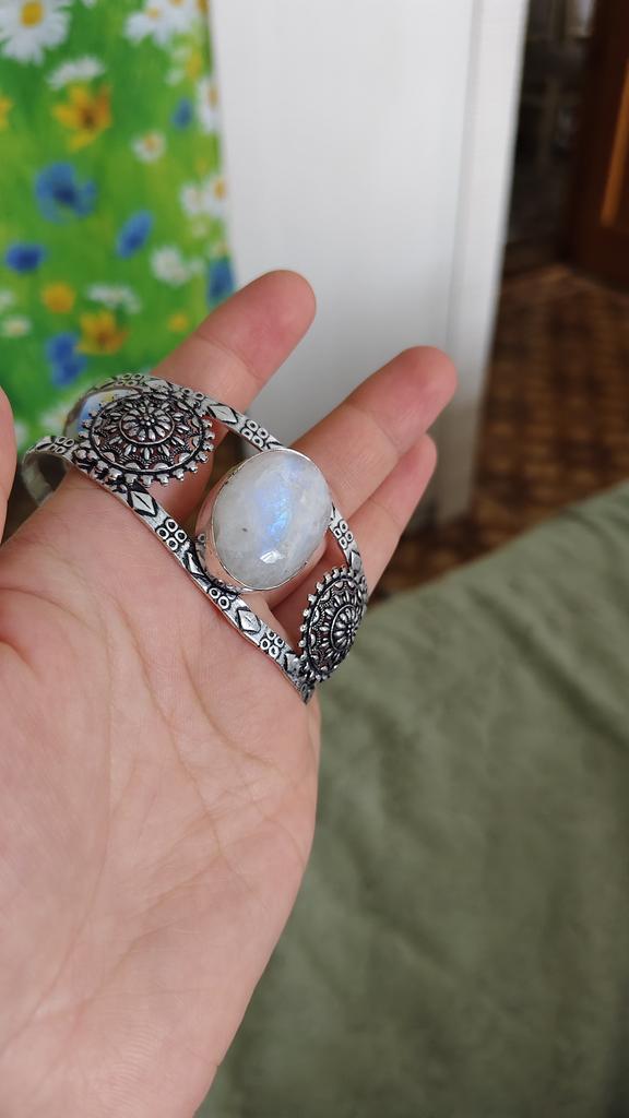 Привлекательный Радужный Лунный Камень Драгоценный Камень Ручной Работы Стерлингового Серебра 925 Пробы Манжеты/Браслет Регулируемые Ювелирные Изделия