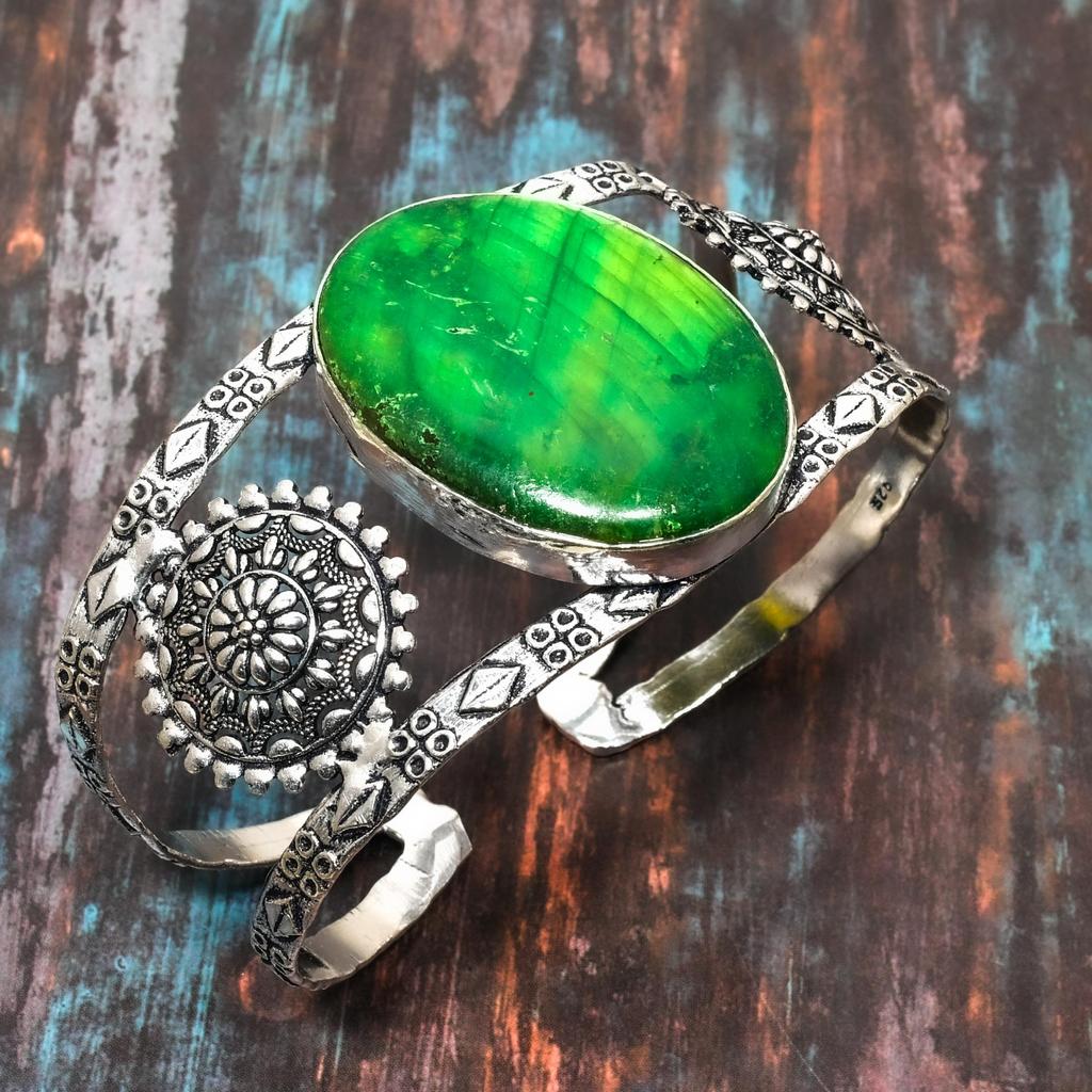 Зеленый лабрадорит, драгоценный камень, стерлинговое серебро 925 пробы, удивительный ювелирный браслет ручной работы, регулируемый браслет-манжета