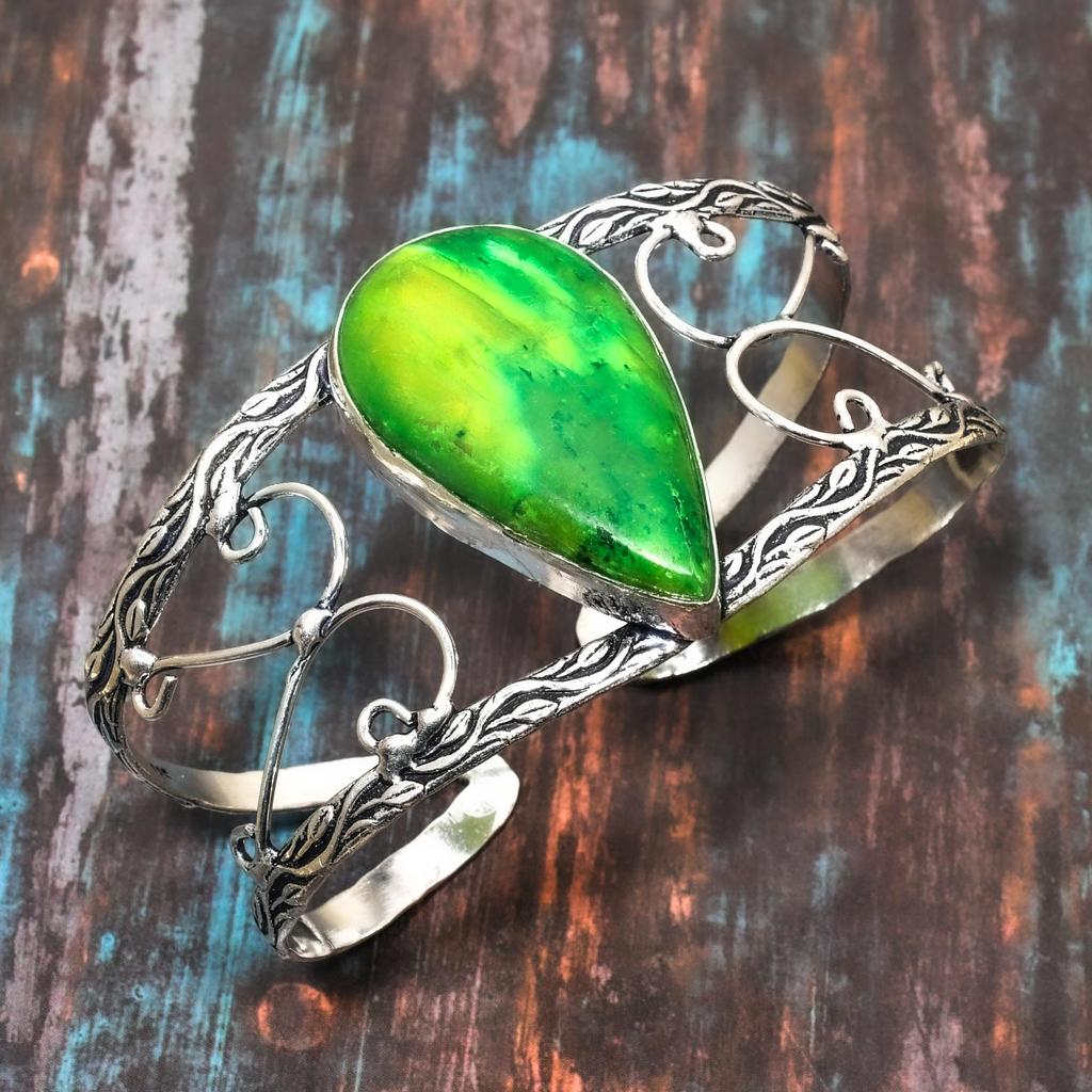 Зеленый лабрадорит, драгоценный камень, ювелирные изделия ручной работы, браслет-манжета из стерлингового серебра 925 пробы, регулируемый