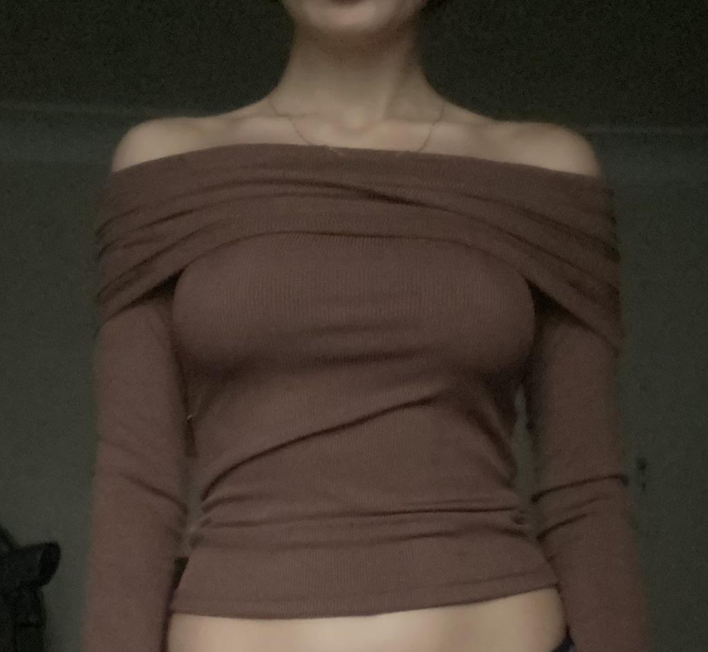 Кофточка идеальная, но есть ОГРОМНЫЙ СУЩЕСТВЕННЫЙ МИНУС! Это горло, которое должно натягиваться на плечи, чтобы был красивый вырез, но это не возможно сделать, ткань очень узкая, и как только ты немного подымишь руки, оно сразу выскакивает вверх и каждый раз так поправлять ткань крайне не удобно и не практично, она должна быть более свободной, чтобы красиво лечь на плечи. Надеюсь со временем оно растянется