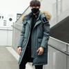 Зимний длинный пуховик со съемной шапкой, большой шерстяной воротник, мужской пуховик до колена, модное модное мужское пальто