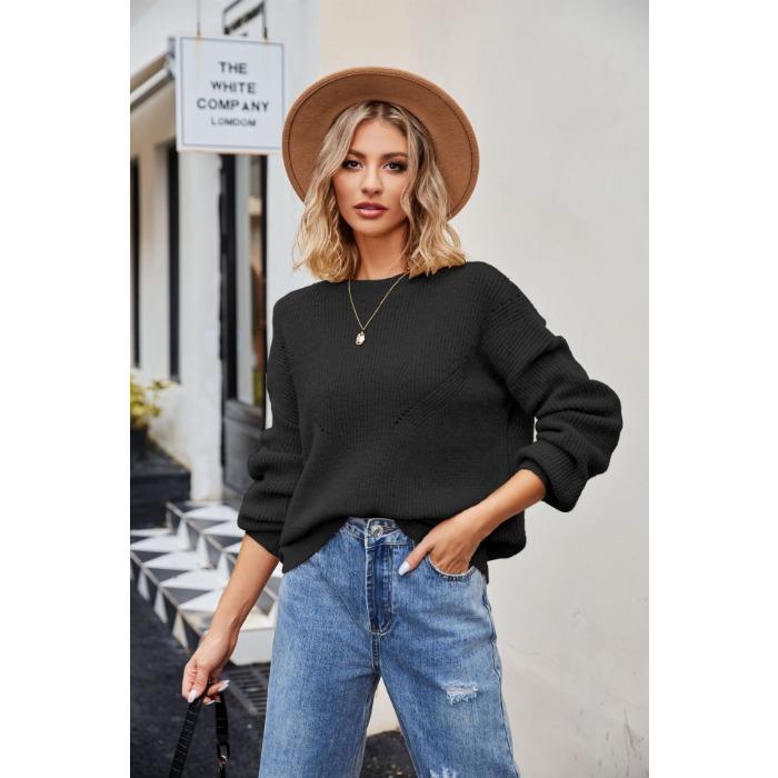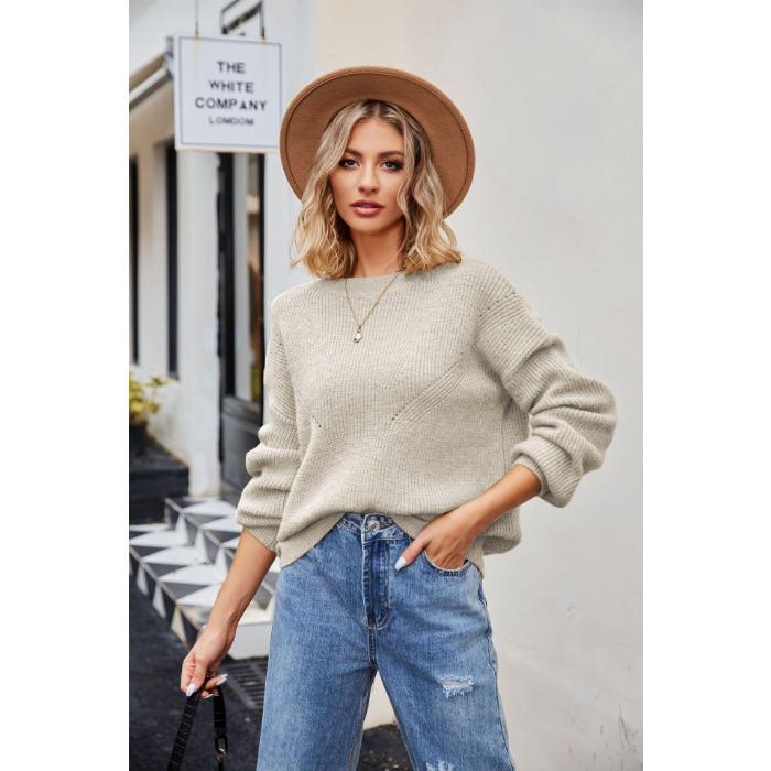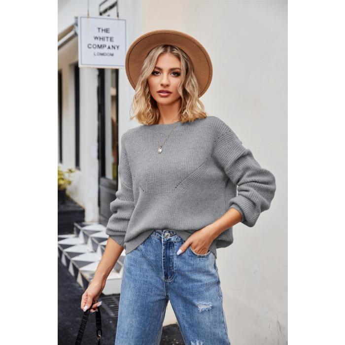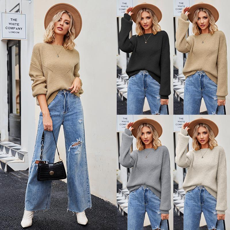 Осенне-зимний женский свитер, модный женский вязаный свитер с круглым вырезом, однотонный свободный пуловер, свитер