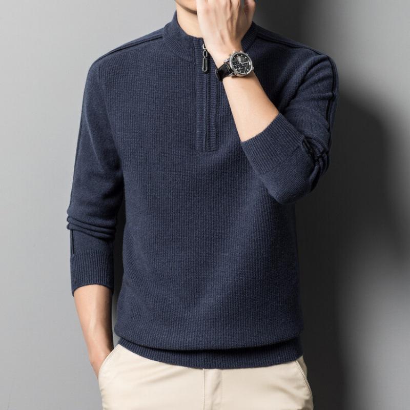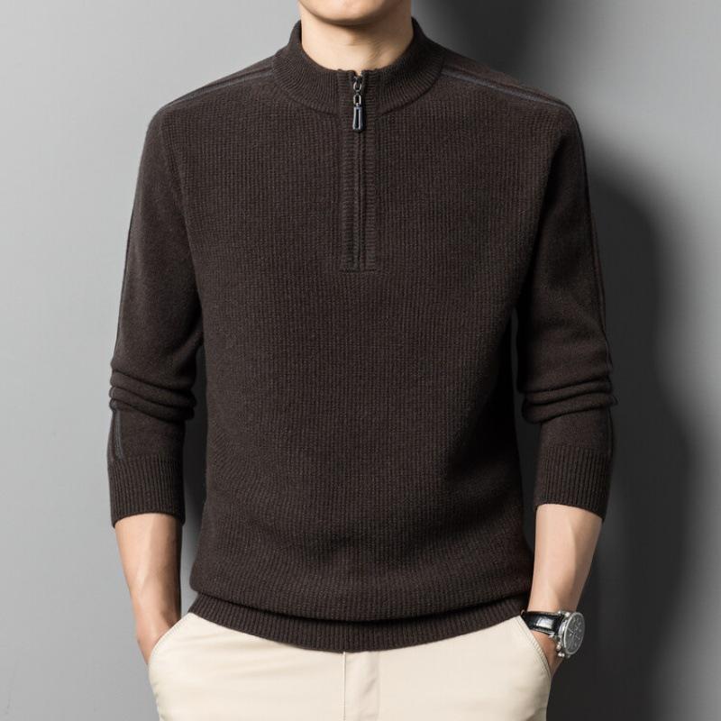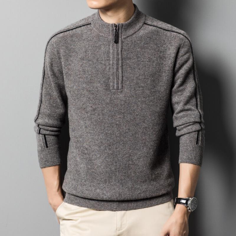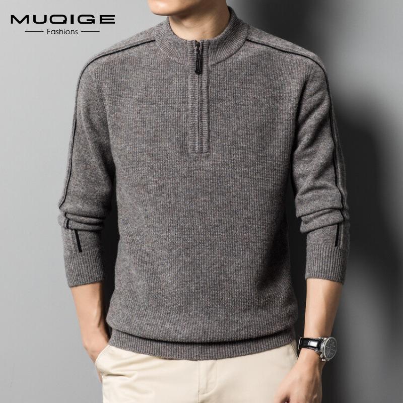 Шерстяной свитер, мужской зимний теплый мужской кашемировый свитер, вязаный свитер с половиной водолазки на молнии