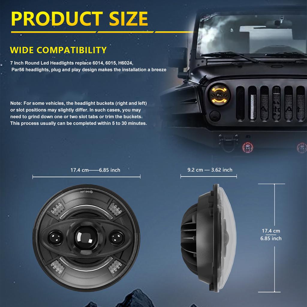 1 шт. 7-дюймовая светодиодная фара с HiLo Beam, DRL и поворотником, водонепроницаемая 7-дюймовая круглая фара