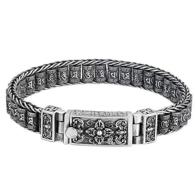 S925 тайский серебряный браслет ручной работы с паспарту, молитвенное колесо, мужские бусины, шесть символов, мантра, роскошный ретро