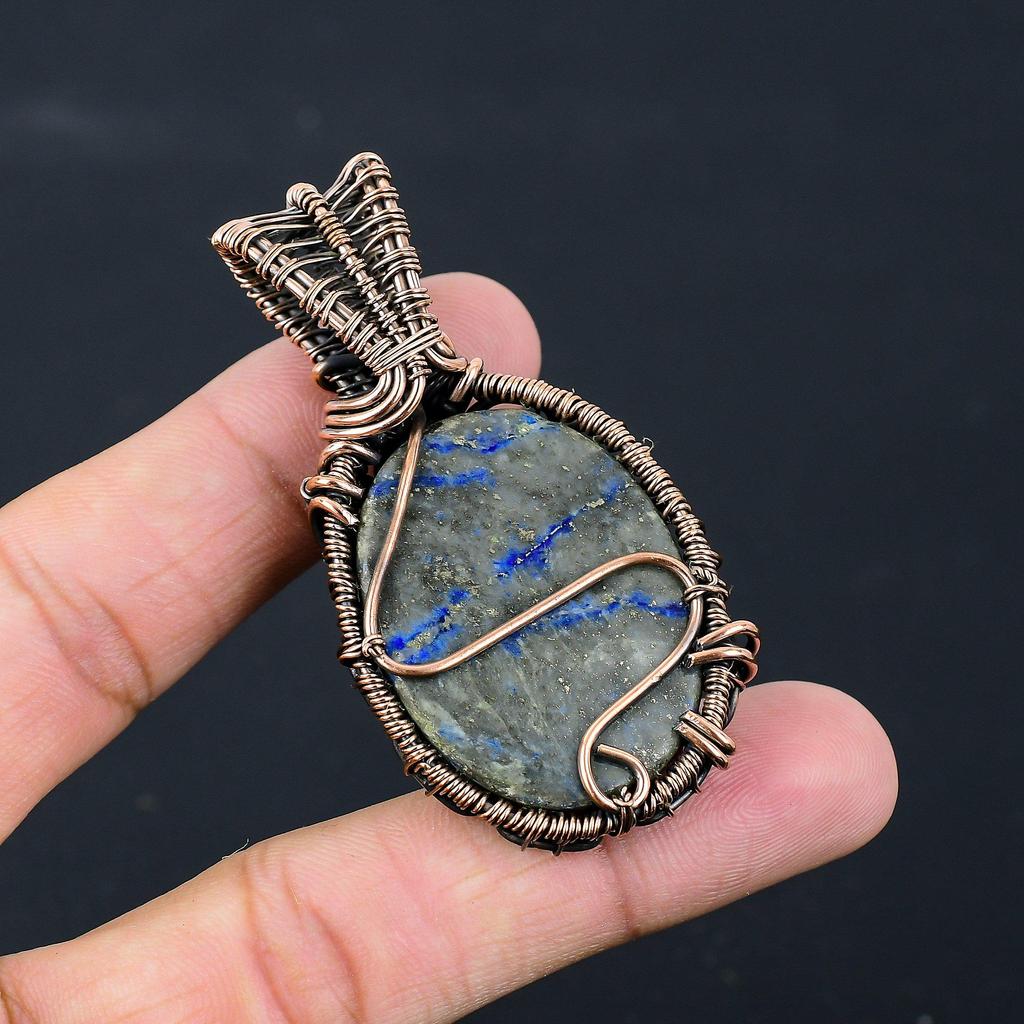 Драгоценный камень лазурит из чистой медной проволоки, завернутый в кулон ручной работы, ювелирный подарок для нее