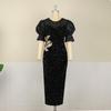 Стильные женские длинные черные платья Бархатные блестки с вышивкой на груди Платье с пышными рукавами