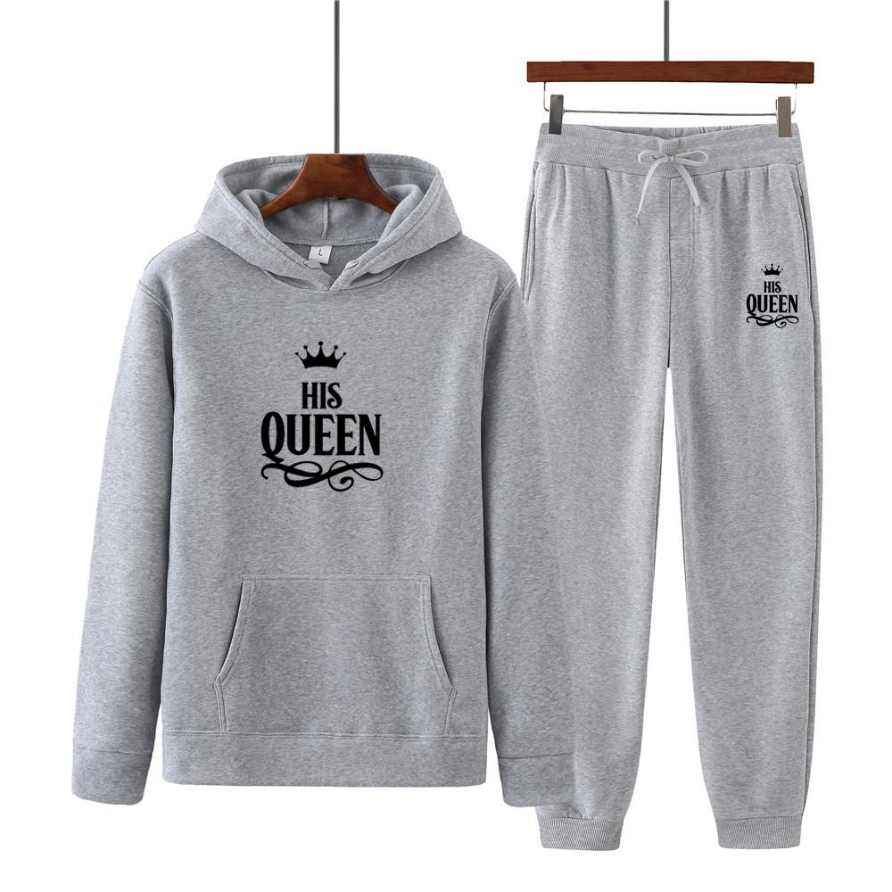 Женский спортивный костюм с длинными рукавами HIS QUEEN с принтом, толстовки, спортивные штаны, спортивная одежда для бега, комплект из 2 предметов