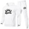 Женский спортивный костюм с длинными рукавами и принтом «Король и королева», комплект с капюшоном для пар, однотонный комплект с капюшоном и брюками, одежда