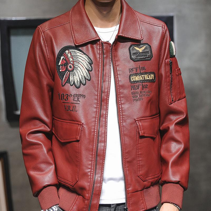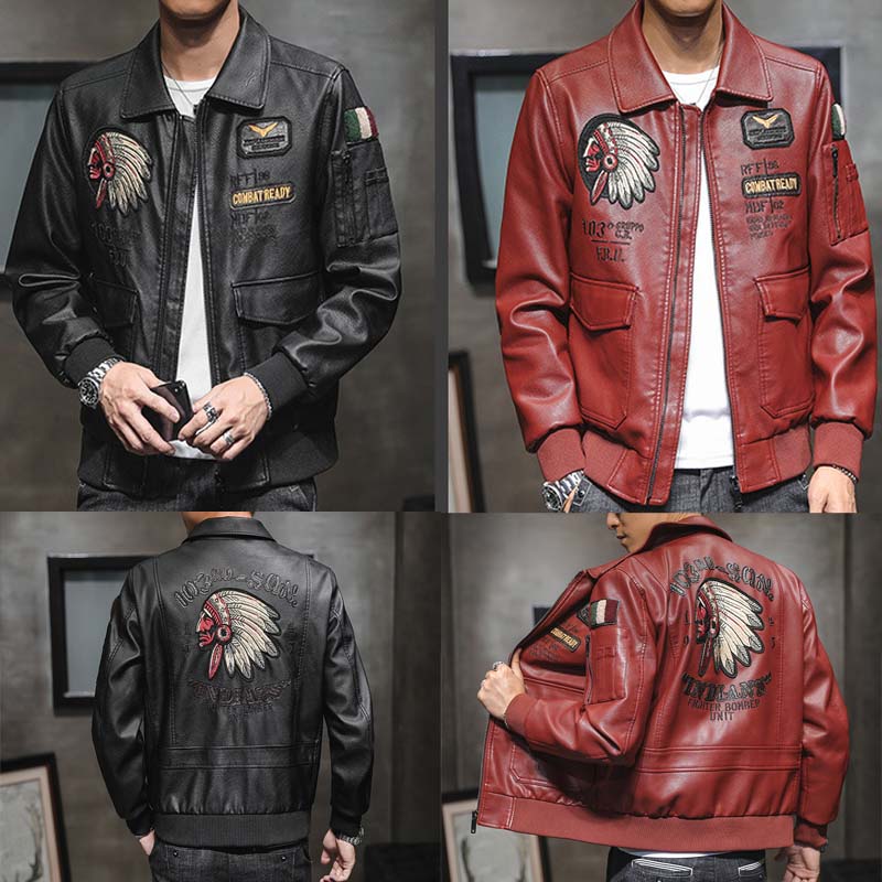 Модная мужская спортивная верхняя одежда, мотоциклетная байкерская кожаная куртка-бомбер с вышивкой индейцев, тонкая флисовая куртка, пальто
