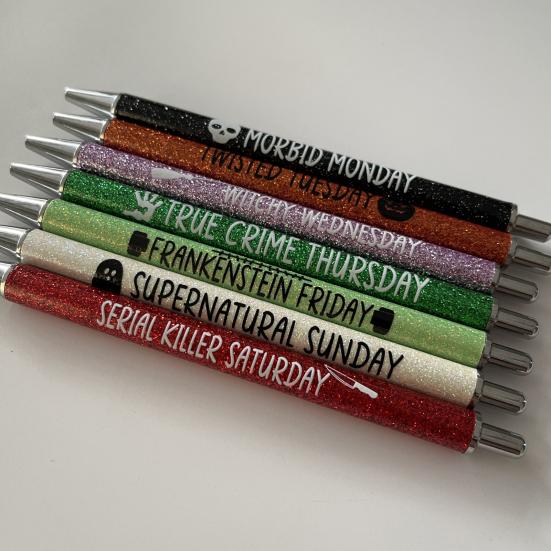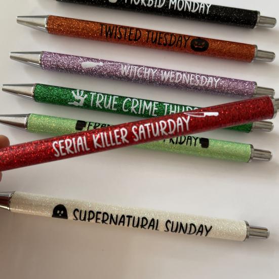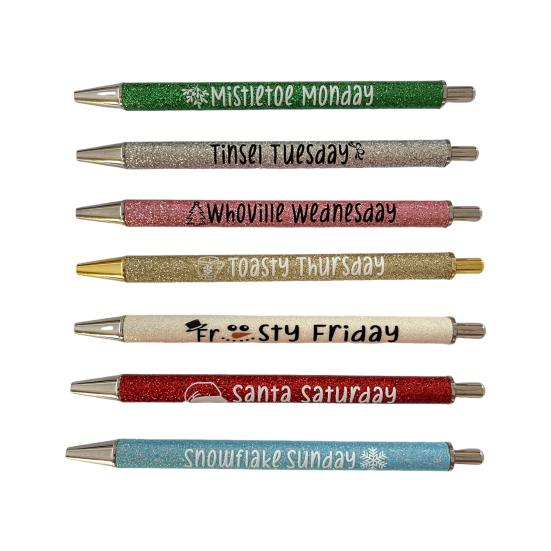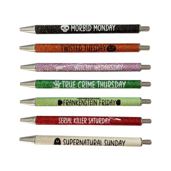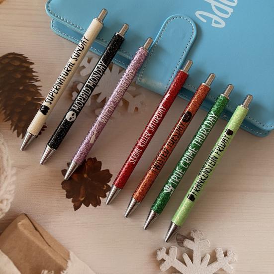 7 шт., блестящая ручка для Рождества, Хэллоуина, 0,7 мм, тонкая точка, 7 дней, будни, выходные, пресс для писем, выдвижная быстросохнущая пластиковая шариковая ручка для письма