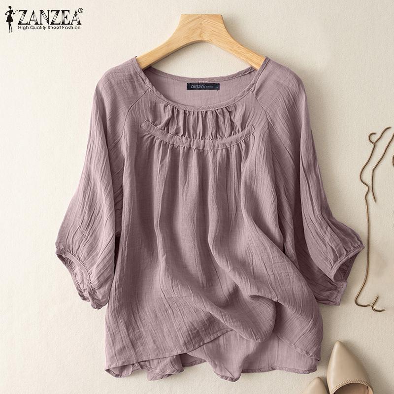 ZANZEA Женская повседневная свободная летняя блузка с круглым вырезом и рукавами 3/4 — купить товар онлайн с бесплатной доставкой до всему миру!