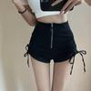 Леди шорты женские короткие с плотным шнурком и высокой талией, тонкие складки