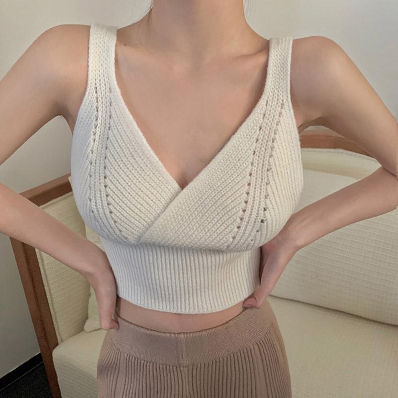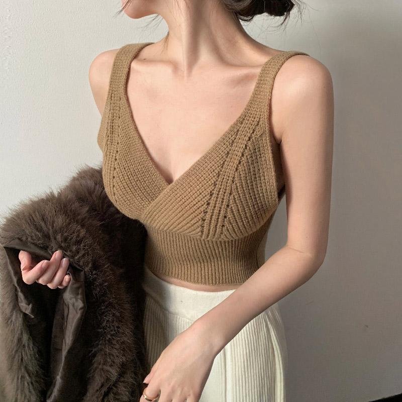 Короткие вязаные майки, женский жилет-слинг, однотонная верхняя одежда, универсальные укороченные топы