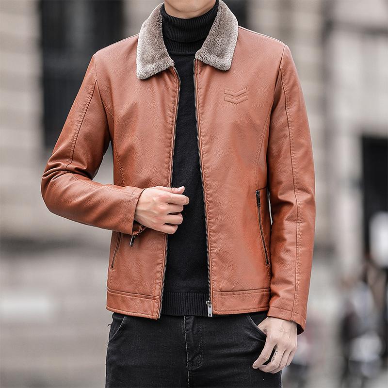 Новая кожаная куртка для мужчин, ветрозащитная дышащая мотоциклетная куртка с тонким меховым воротником, флисовая корейская модная уличная одежда, мужская одежда