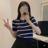 Женский ледяной шелк с круглым вырезом, универсальный пуловер в стиле ретро с коротким рукавом, вязаный короткий