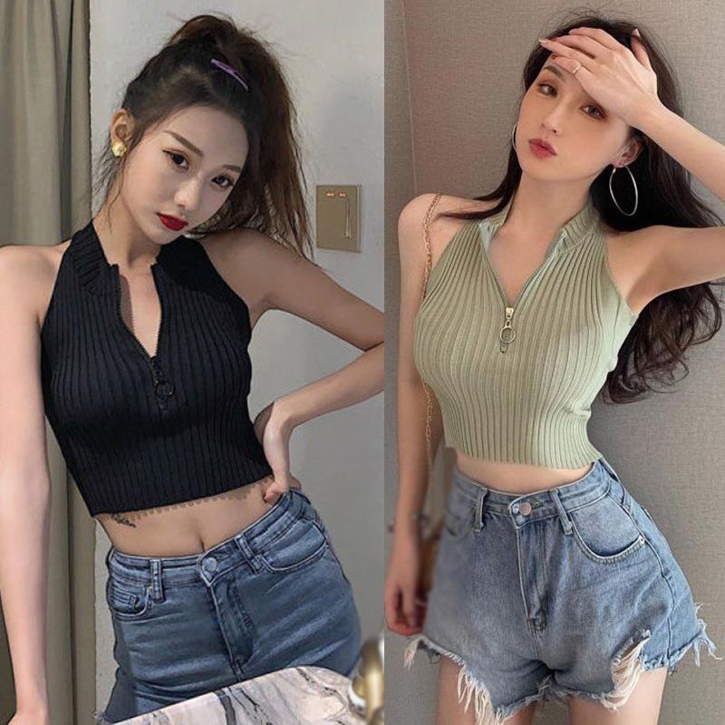 Женский укороченный топ, корсетные топы, вязаный жилет, топ без рукавов с плотной застежкой-молнией — купить товар онлайн с бесплатной доставкой до всему миру!