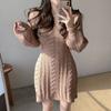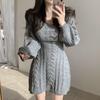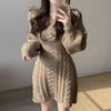 Осень-зима вязаное трикотажное платье-свитер женское винтажное повседневное однотонное тонкое мини-короткое платье с запахом и длинным рукавом вечерние