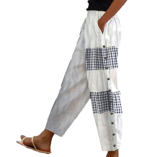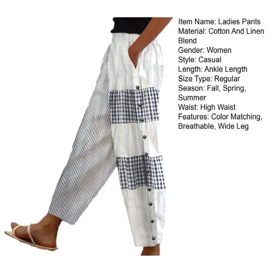 Представляем наши стильные и удобные женские брюки с прямыми штанинами, идеально подходящие для любого случая. Изготовленные из высококачественной хлопчатобумажной и льняной ткани, эти брюки мягкие, легкие и дышащие, что обеспечивает максимальный комфорт в течение дня. Строчка в клетчатую полоску добавляет модный штрих к дизайну, заставляя вас выглядеть элегантно и очаровательно, независимо от того, занимаетесь ли вы спортом или работаете.