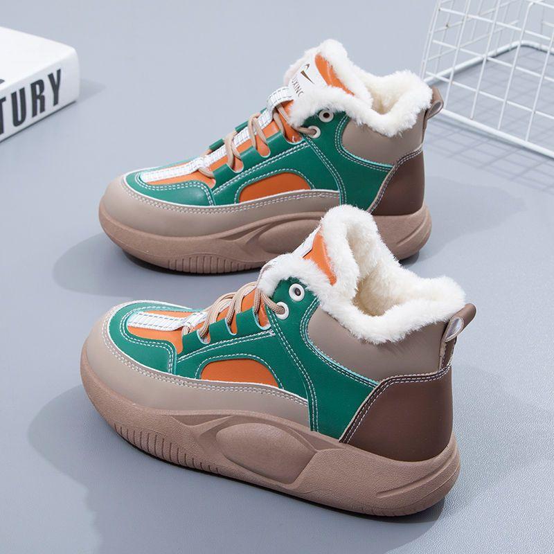 Зимняя женская теплая хлопковая обувь больших размеров, модные повседневные женские ботинки, универсальные женские плюшевые спортивные ботинки