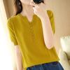 Новая летняя женская футболка с короткими рукавами, свободная тонкая трикотажная футболка с v-образным вырезом, универсальные тонкие топы с короткими рукавами на тонких пуговицах