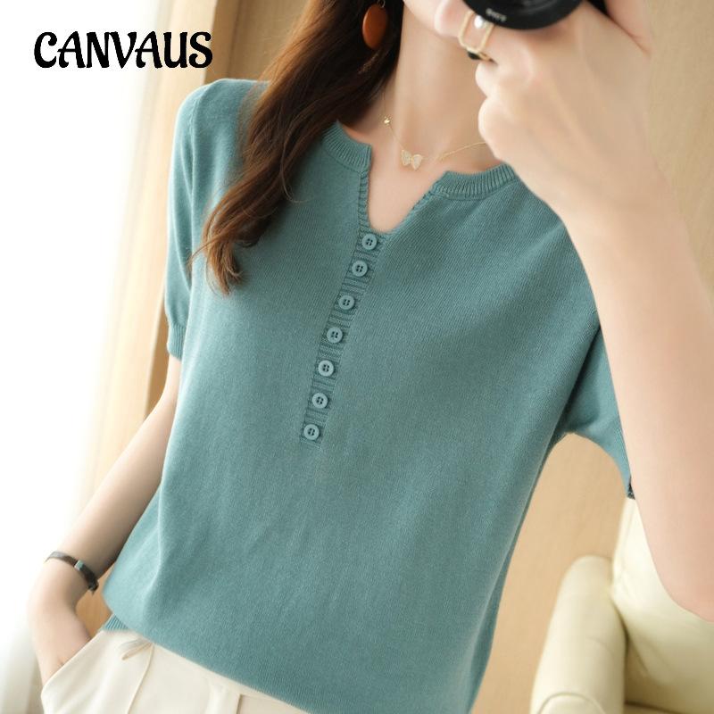 Новая летняя женская футболка с короткими рукавами, свободная тонкая трикотажная футболка с v-образным вырезом, универсальные тонкие топы с короткими рукавами на тонких пуговицах — купить товар онлайн с бесплатной доставкой по всему миру!