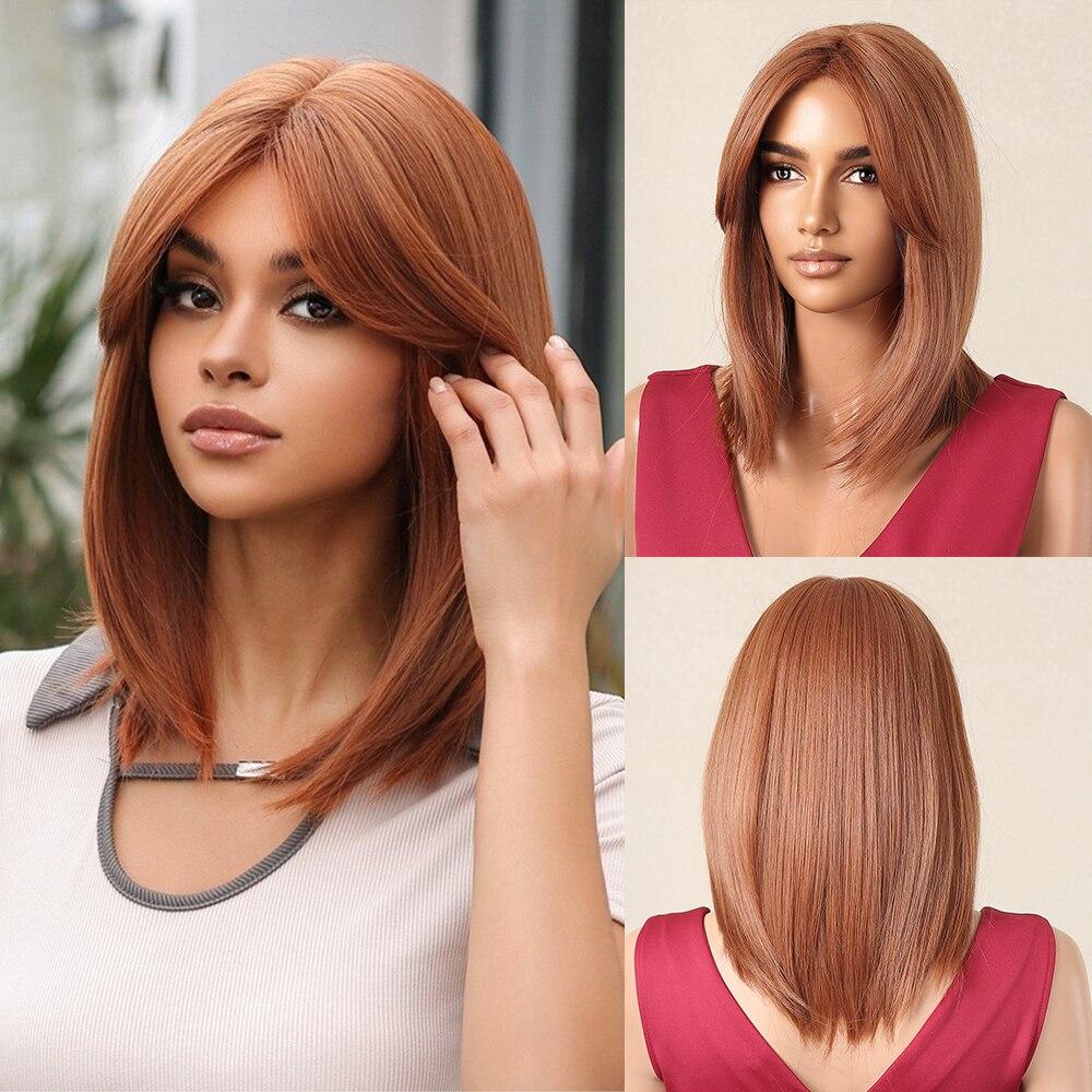 Оранжево-коричневый, средние прямые синтетические парики «боб», короткие волосы с челкой для чернокожих женщин, многослойный парик Лолиты для косплея, термостойкий — купить товар онлайн с бесплатной доставкой по всему миру!