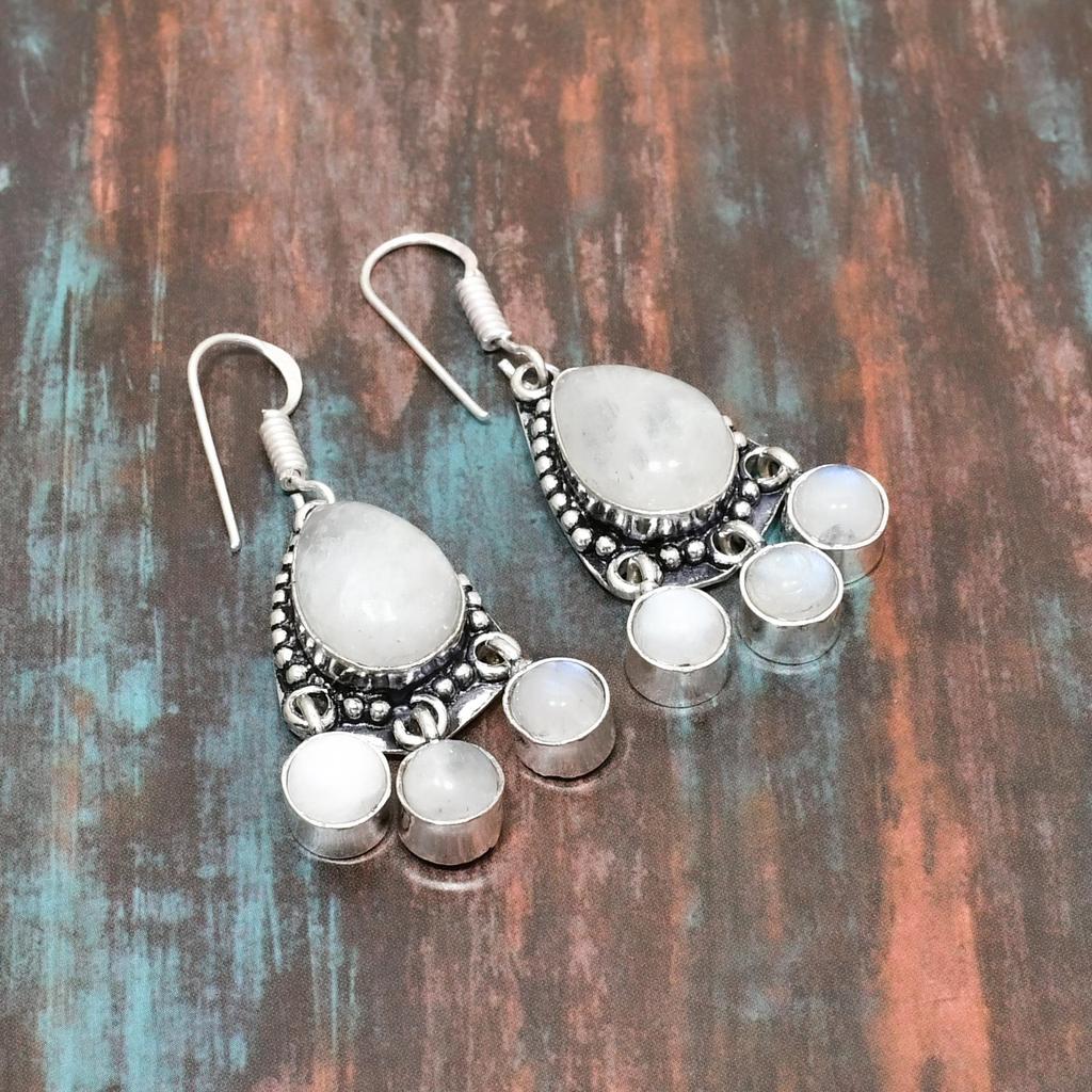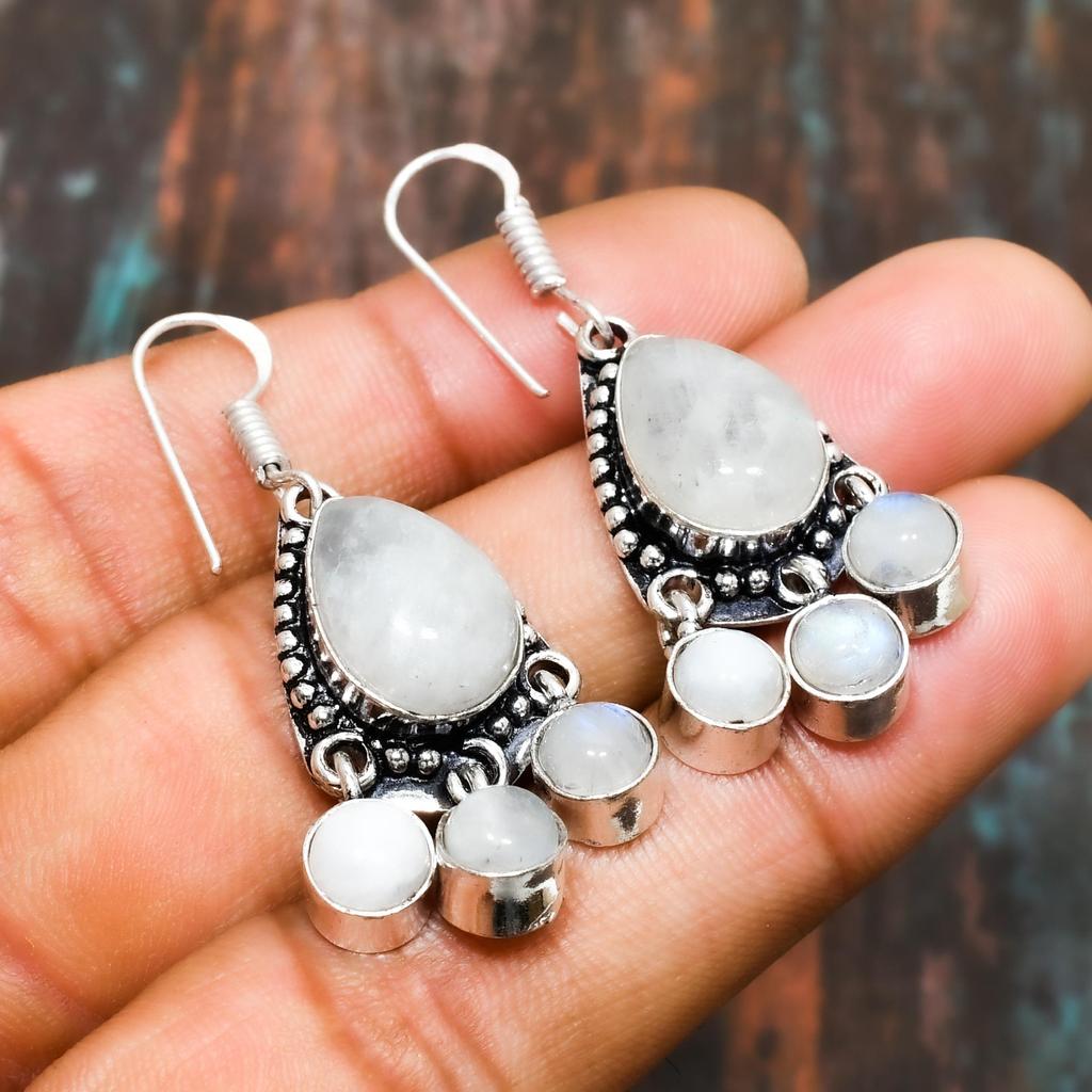 Красивый радужный лунный камень, серьги ручной работы из стерлингового серебра 925 пробы с драгоценными камнями