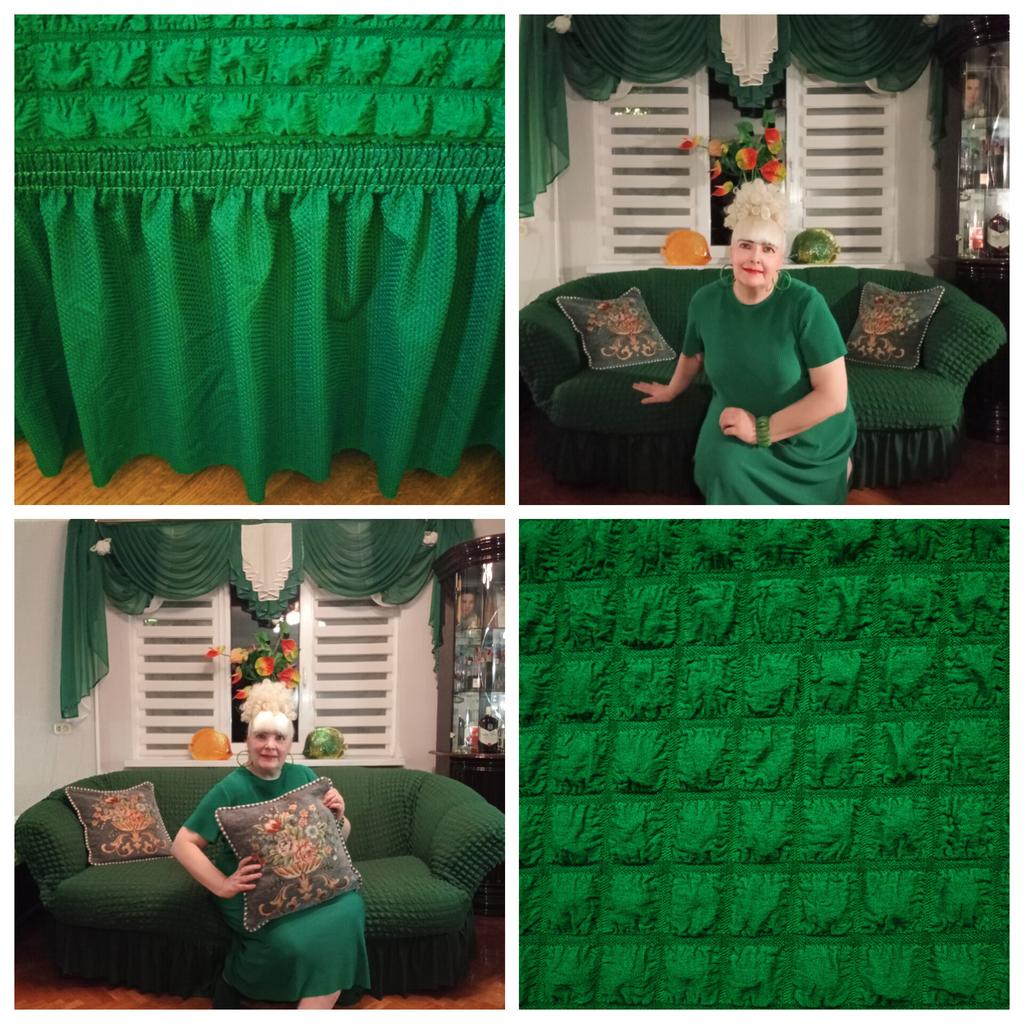 🟩ЗЕЛЁНЫЙ ЭЛАСТИЧНЫЙ ЧЕХОЛ ИЗ БУКЛИРОВАННОЙ ТКАНИ ОТДЕЛАННОЙ КОКЕТЛИВОЙ РЮШЕЙ, ПРЕДНАЗНАЧЕННЫЙ ДЛЯ ЗАЩИТЫ ДИВАНА 🟩 👉Жми на СЛАЙД-ШОУ! Зелёный защитный чехол я купила для дивана, расположенного в детской комнате. Хотя мой сын уже давно вырос, но комната до сих пор ещё носит это название) Чехол мне понадобился для того чтобы сохранить внешний вид моей мягкой мебели. Но он эту мебель ни капельки не портит. А даже наоборот придаёт ей привлекательсть и очарование. Чехол очень качественный, нарядный и симпатичный. А особенно меня покорил его роскошный зелёный насыщенный цвет! Ну и конечно же кокетливая длинная рюша. Она составляет 25 см. Чехол выполнен из эластичной буклированной ткани. Мой диван в детской комнате имеет размер 1 м 60 см в ширину и 87 см в высоту. Полученный чехол по размеру отлично подошёл. А размер я выбрала 3seat 190*230. То есть этот размер подходит на трёхместный большой диван. В комплекте с чехлом я получила восемь фиксаторов из пенопласта. Они предназначены для того, чтобы закрепить чехол на диване. Для этого нужно просунуть фиксаторы в щель между спинкой и сидушкой вдоль всего периметра дивана. Чехол станет натянутым и не будет съезжать. Никаких дополнительных завязок чехол не имеет. Но это и не требуется. Ткань выполнена из 100% полиэстера. Она легко стирается и не требует глажки утюгом, кроме рюши. Чехол я получила в полиэтиленовом мешке, затянутым шнурком. Теперь мой диван в детской комнате надолго сохранит свой внешний вид. А с чехлом он стал выглядеть привлекательно и романтично. Мне нравится! К покупке советую. 🎼В слайд-шоу использована композиция "Я куплю тебе дом" в исполнении группы "Лесоповал".