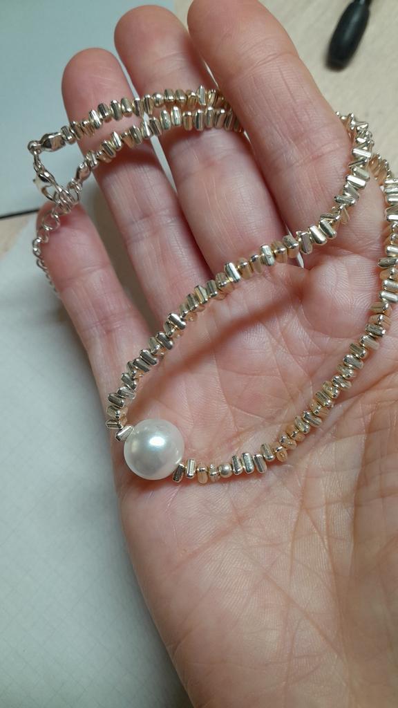 Красивыыый, пока новый. Легкиииий. 😁 Смотрится как серебряный. Пожалуй всё. Голимый пластик. Спрашивайте, отвечу😊 Позже допишу сошёл блеск или держится. Ношу на выход. ДОПИСЫВАЮ, надевала только на выход. Пластмасса пожелтела. Соприкасалась с телом может быть из за этого-то 🤔. Жалко, новая была супер.