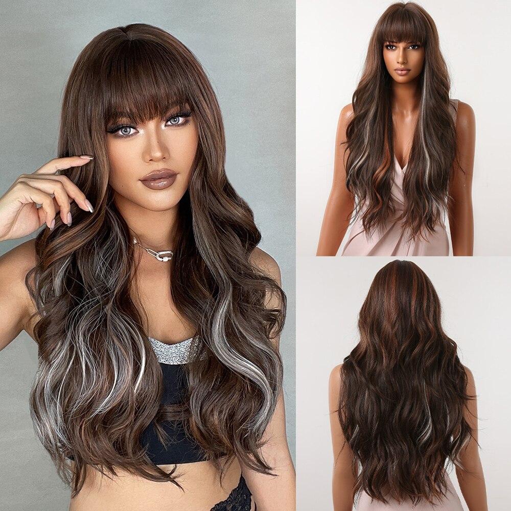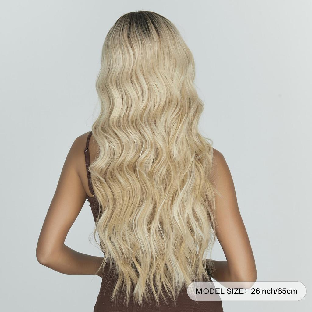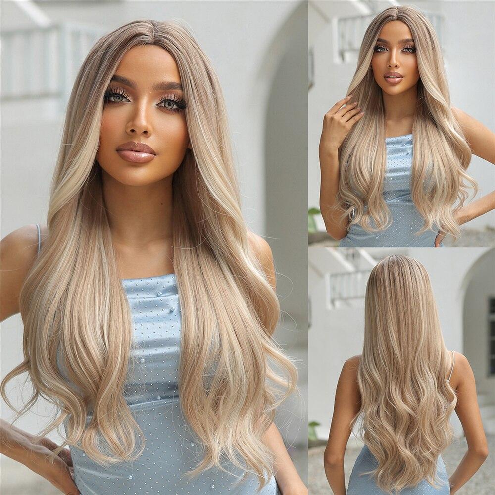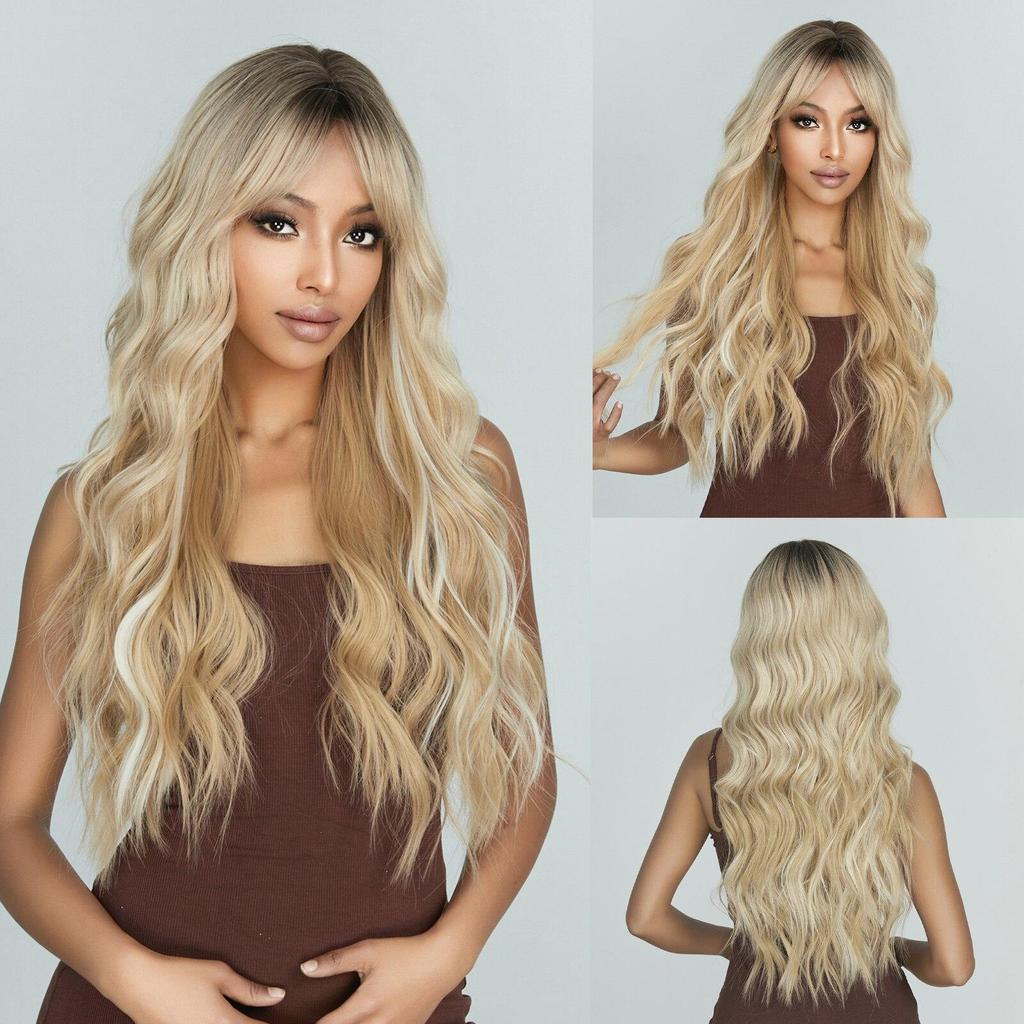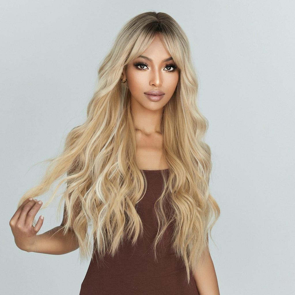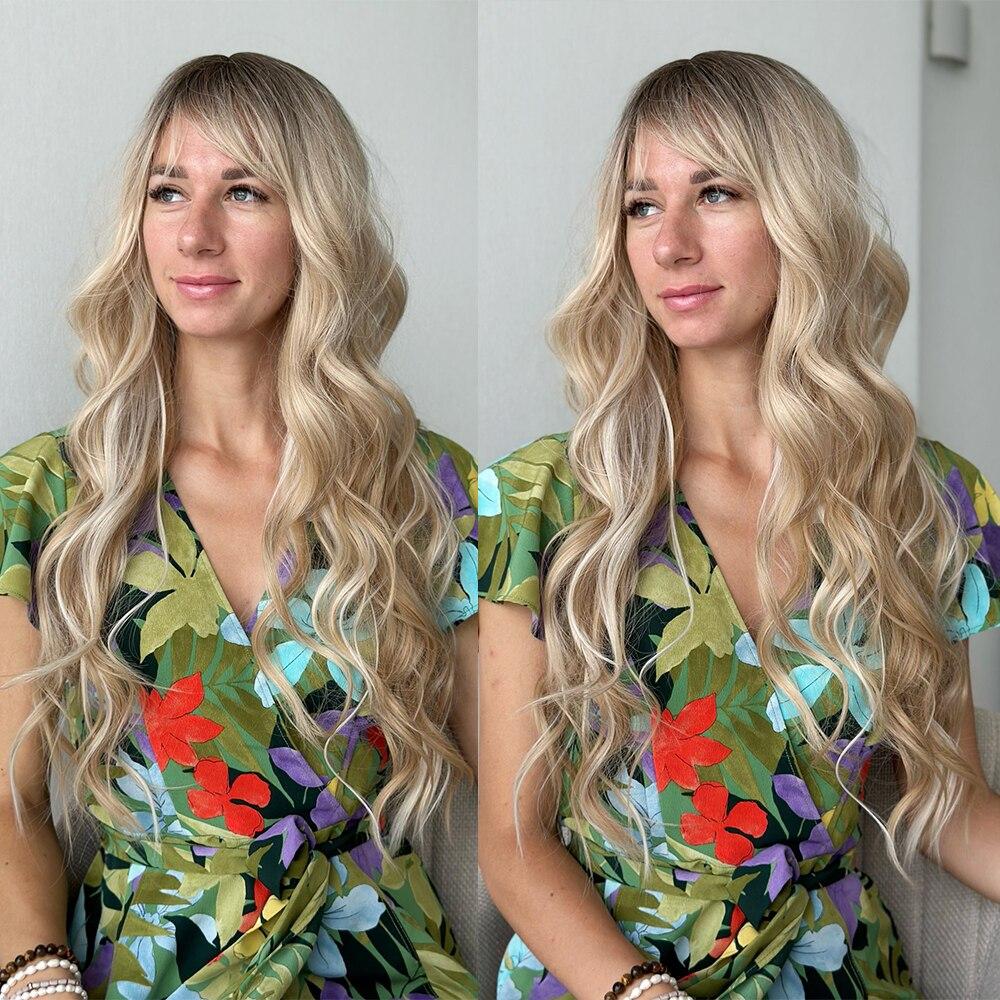 Ombre Blonde Platinum Синтетические парики Длинные вьющиеся волны Парик из натуральных волос для женщин Афро-косплей парик Термостойкие парики с челкой