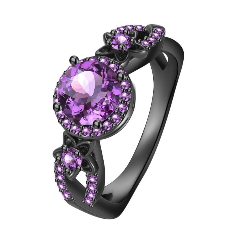 Комплект цветочных колец из черного золота с красочным красным и фиолетовым цирконом, модное кольцо с цветком вишни — купить товар онлайн с бесплатной доставкой по всему миру!