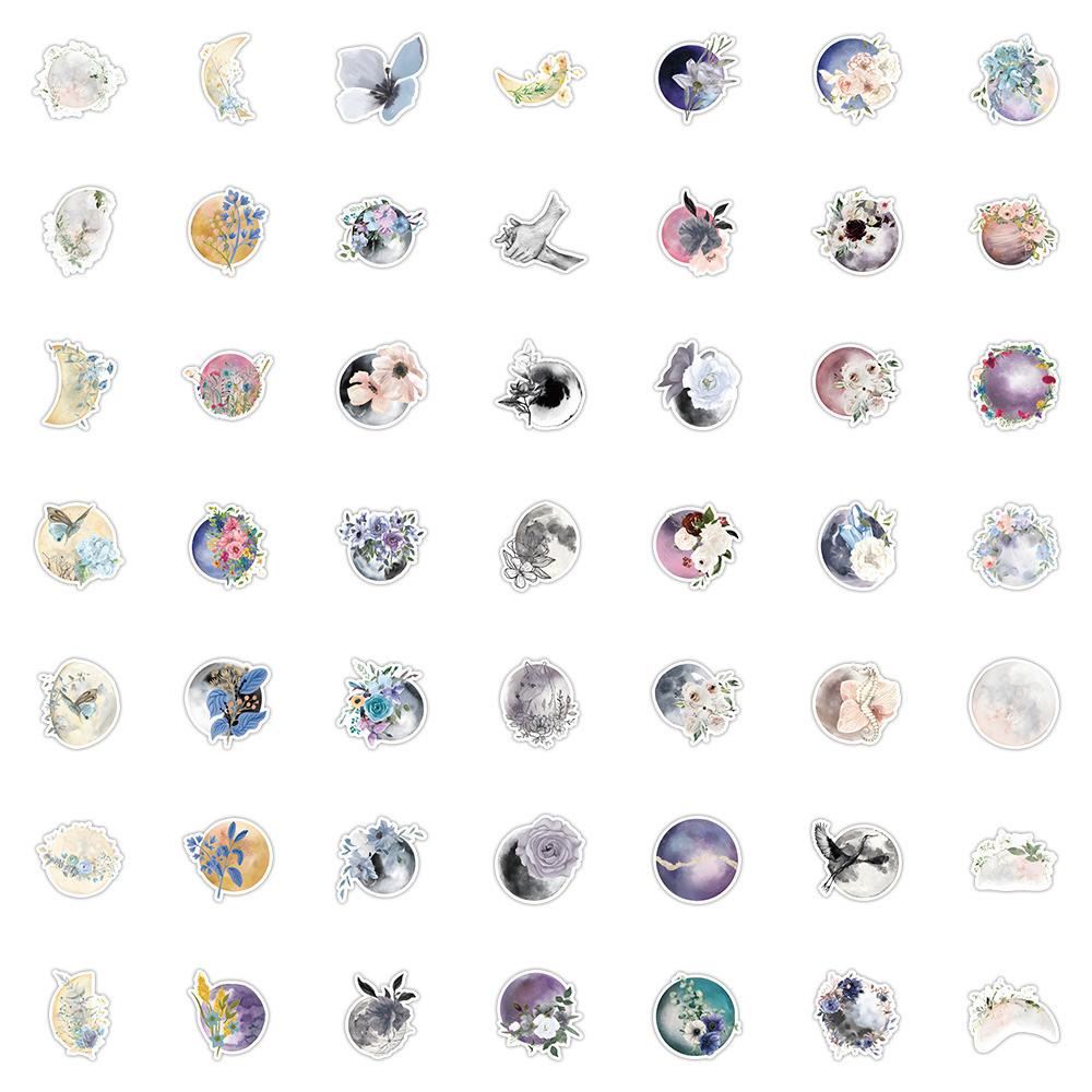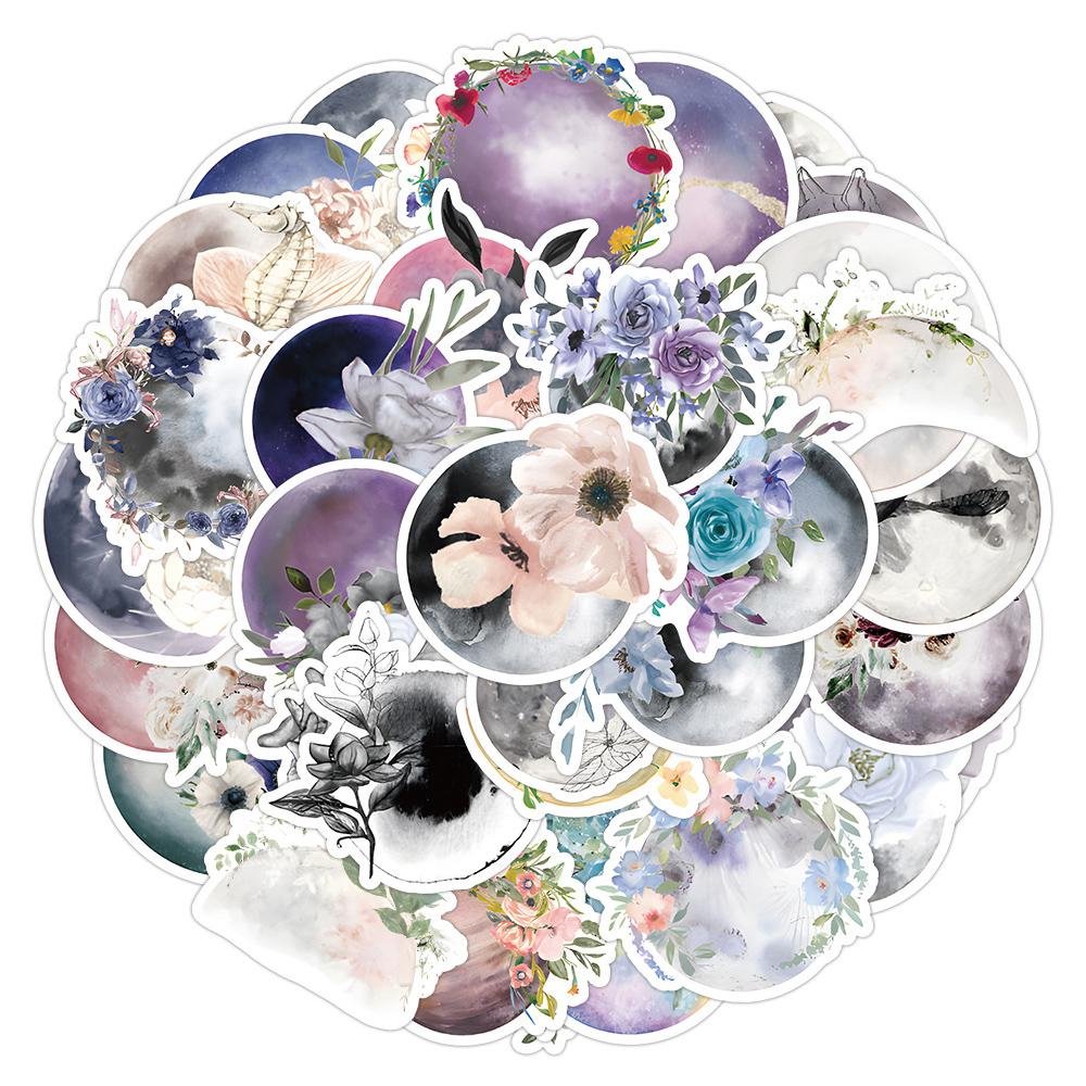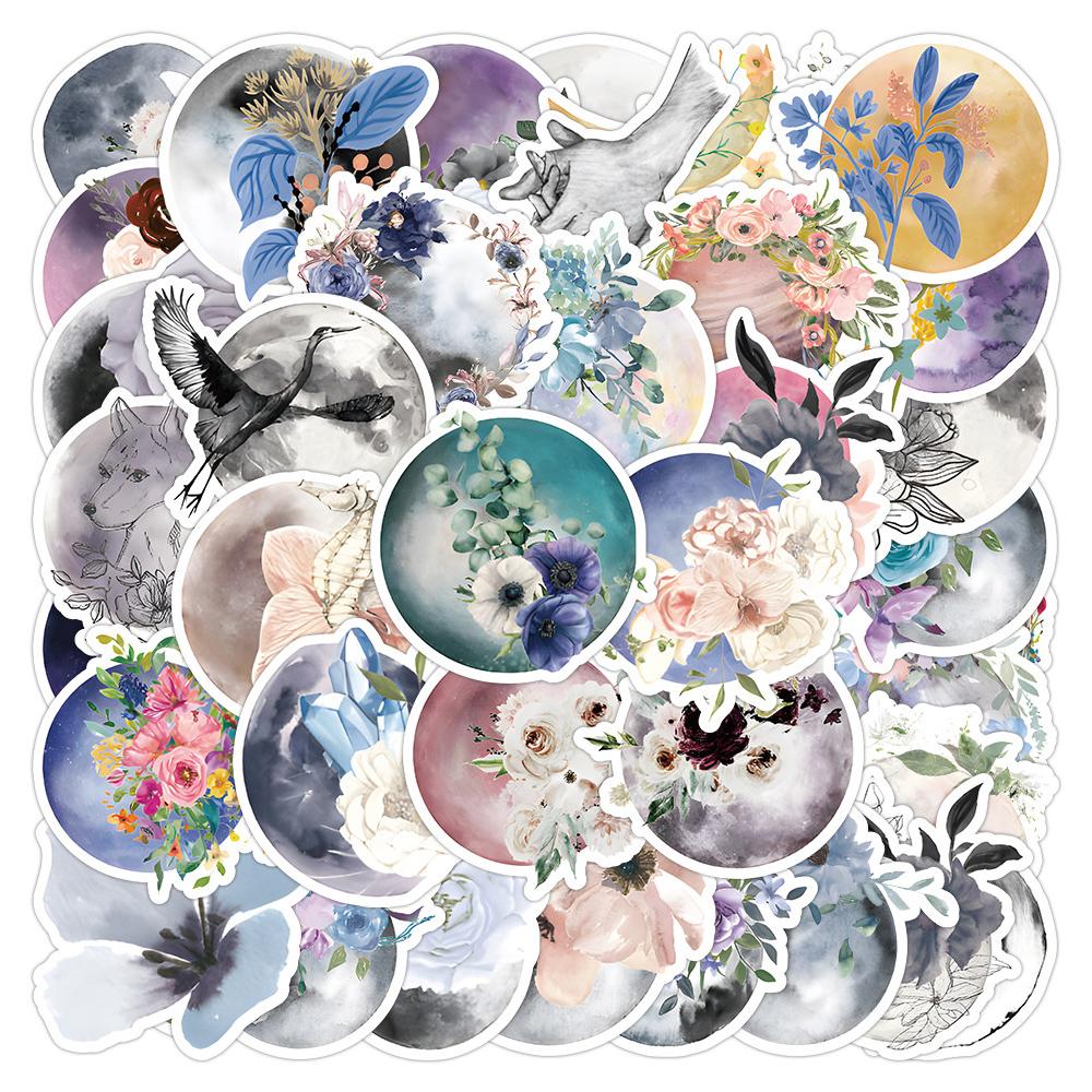 10/50 шт. милые художественные цветы с рисунком луны, эстетические наклейки для ноутбука, чемодана, телефона, этикетка, декоративная наклейка