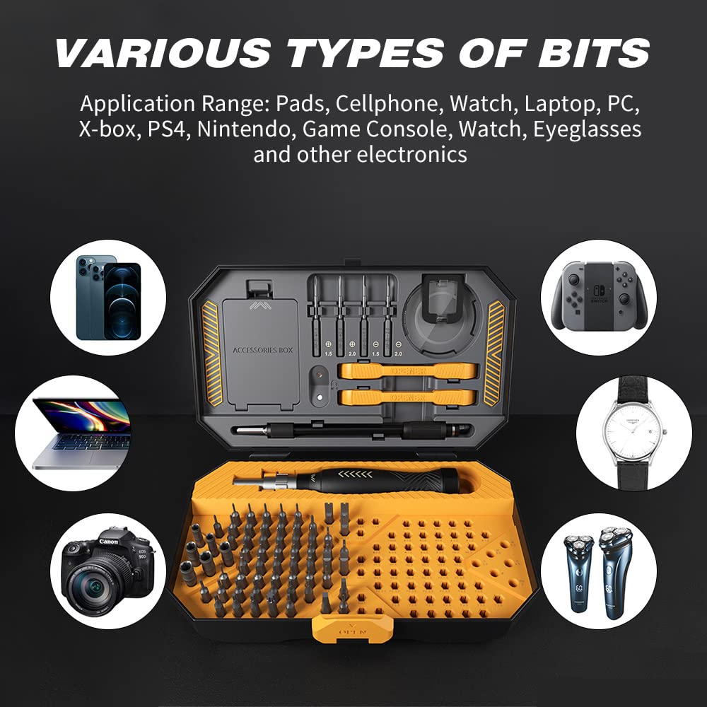 【МНОГОФУНКЦИОНАЛЬНЫЙ РЕМКОМПЛЕКТ】Этот набор прецизионных отверток содержит 132 насадки, которые вам понадобятся для выполнения любого ремонта или самостоятельного проекта для планшетов, мобильного телефона, часов, ноутбука, ПК, X-box, PS5, игровой консоли, часов, очков, дронов, ювелирных изделий. , электроника и другая бытовая техника. Понравится как профессионалам, так и любителям.