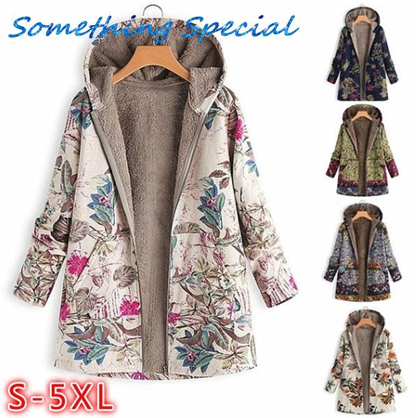 Женское пальто с капюшоном и принтом в виде листьев, винтажная куртка с длинным рукавом и цветочным принтом, зимняя утепленная верхняя одежда больших размеров S-5XL — купить товар онлайн с бесплатной доставкой по всему миру!