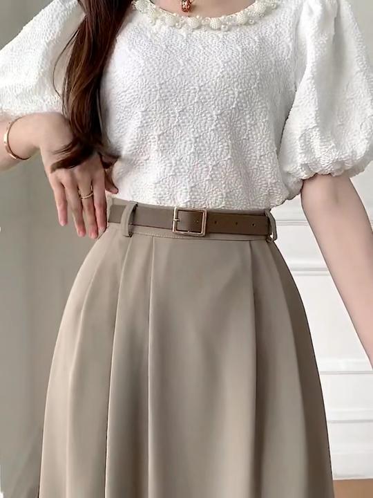 Летние повседневные юбки с высокой талией, женская мода, корейский стиль, однотонные, универсальные, элегантные, длинные юбки А-силуэта, Faldas — купить товар онлайн с бесплатной доставкой до всему миру!