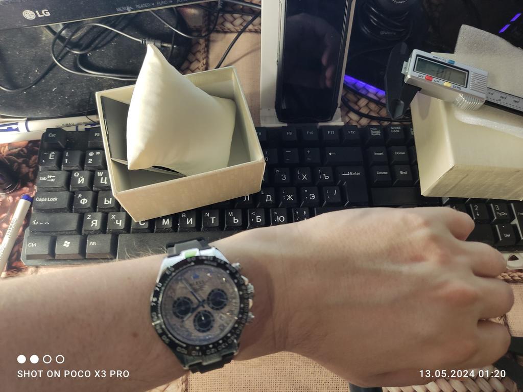 Отличные часы. Смотрятся, кстати, дорого. Очень качественный ремешок, только экран не в тон ремешку, как на фото, а поярче, позеленее.