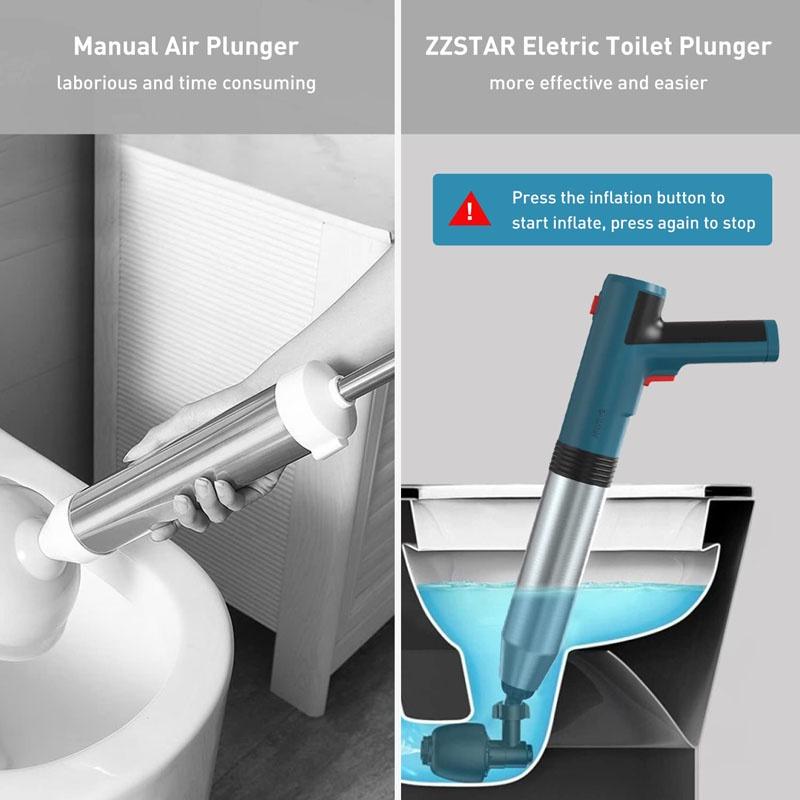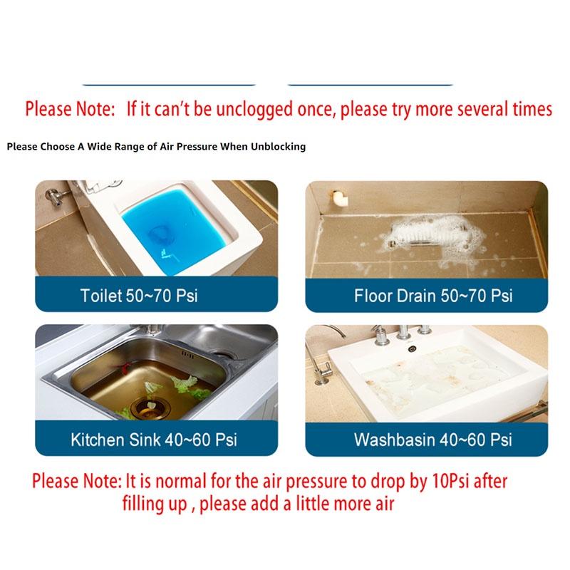 【Советы по давлению в реальном времени】 Индикатор давления воздуха устройства для удаления засора сливной змеи позволяет вам знать давление 0-10 бар в реальном времени во время накачивания, чтобы вы могли точно контролировать пневматические действия и рабочие силы, избегая разбрызгивания и повреждений. с помощью чрезмерной силы. Этот электрический вантуз для унитаза нельзя использовать для разблокировки засоров, вызванных твердым пластиком, стеклом, металлическими предметами или строительным мусором.