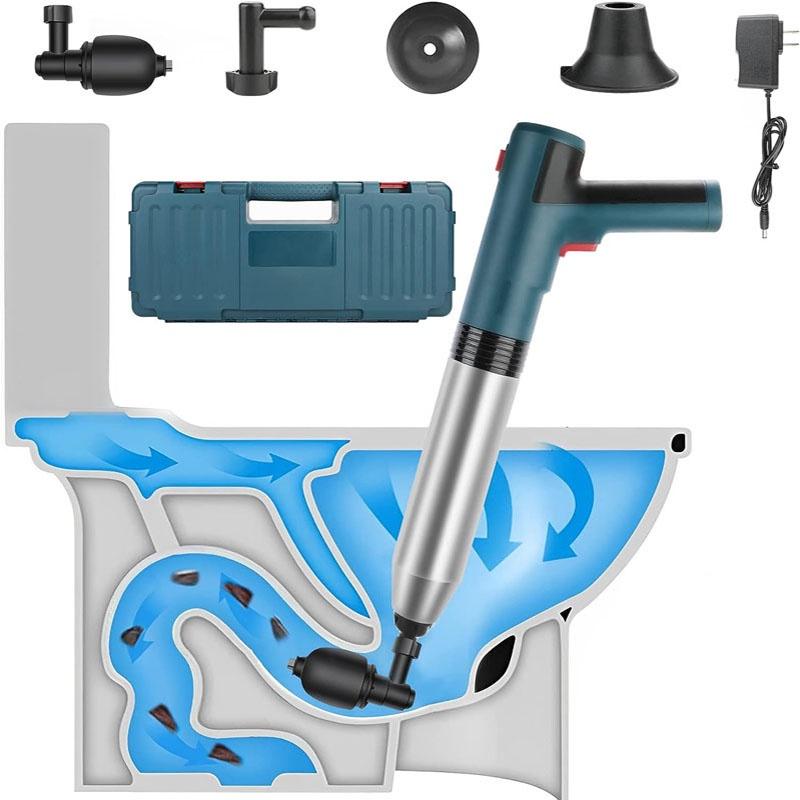Электрический плунжер для унитаза, инструменты для удаления сливных засоров, пневматические плунжеры для унитазов высокого давления. Сверхмощный плунжер для туалета, ванной комнаты, трапа в полу, канализации, трубы, встроенный аккумулятор, СИНИЙ.