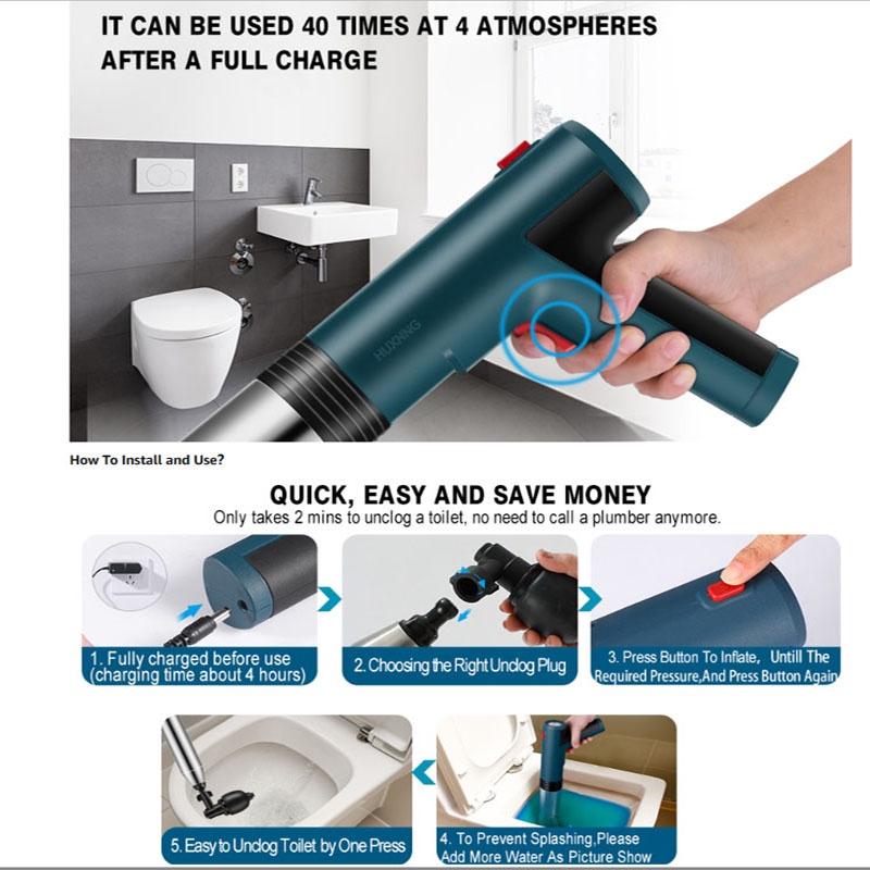 【Конструкция высокого давления экономит время】 Электрическая унитазная змея использует силу сжатого воздуха, может надуваться автоматически, можно заряжать один раз и использовать несколько раз, можно использовать более 30 раз при давлении ниже 4 бар/30 раз при давлении ниже 5 бар после полной зарядки. Чтобы прочистить унитаз, требуется всего 2 минуты. Более эффективно, чем традиционные змеевиковые вантусы. Быстро, легко и недорого. Экономьте деньги.